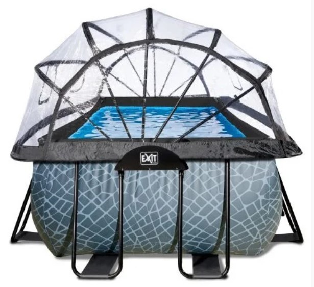 Ця модель доповнена багатофункціональним куполом і вибравши саме цей басейн, ви більше не залежите від погодних умов. Купол у вигляді накриття або тенту надійно закриває воду в басейні від небажаних забруднень, наприклад, що впали з дерев листя. Також подібний тент сприяє швидкому прогріванню води в басейні, оскільки тепло від сонячних променів зберігається під накриттям довше. Купол прозорий, легко відкривається завдяки вбудованим пружинам, також має три окошка.