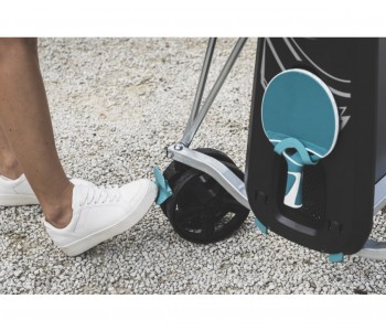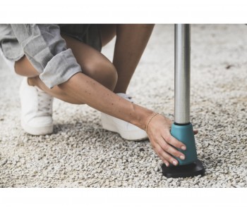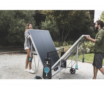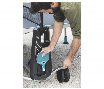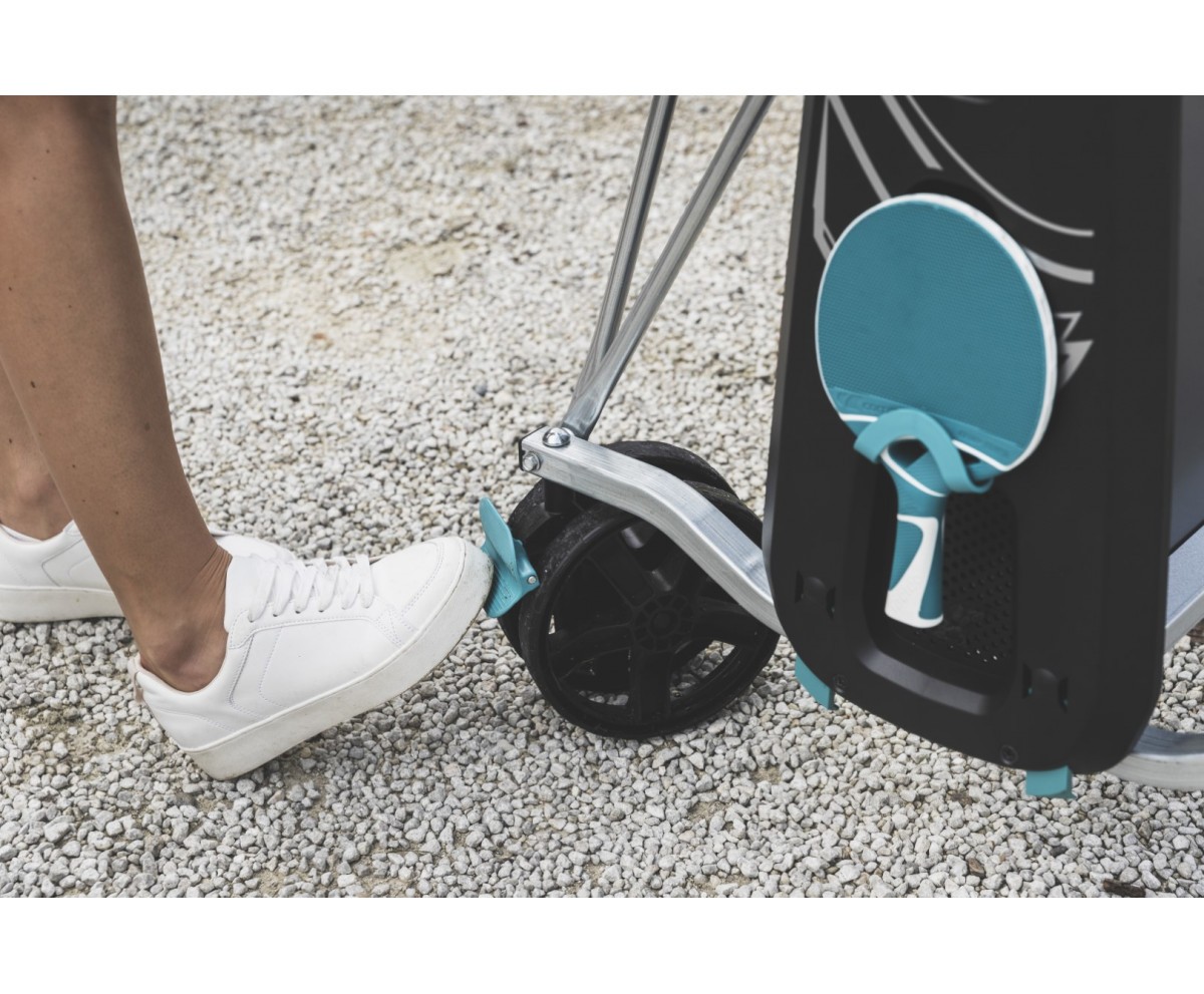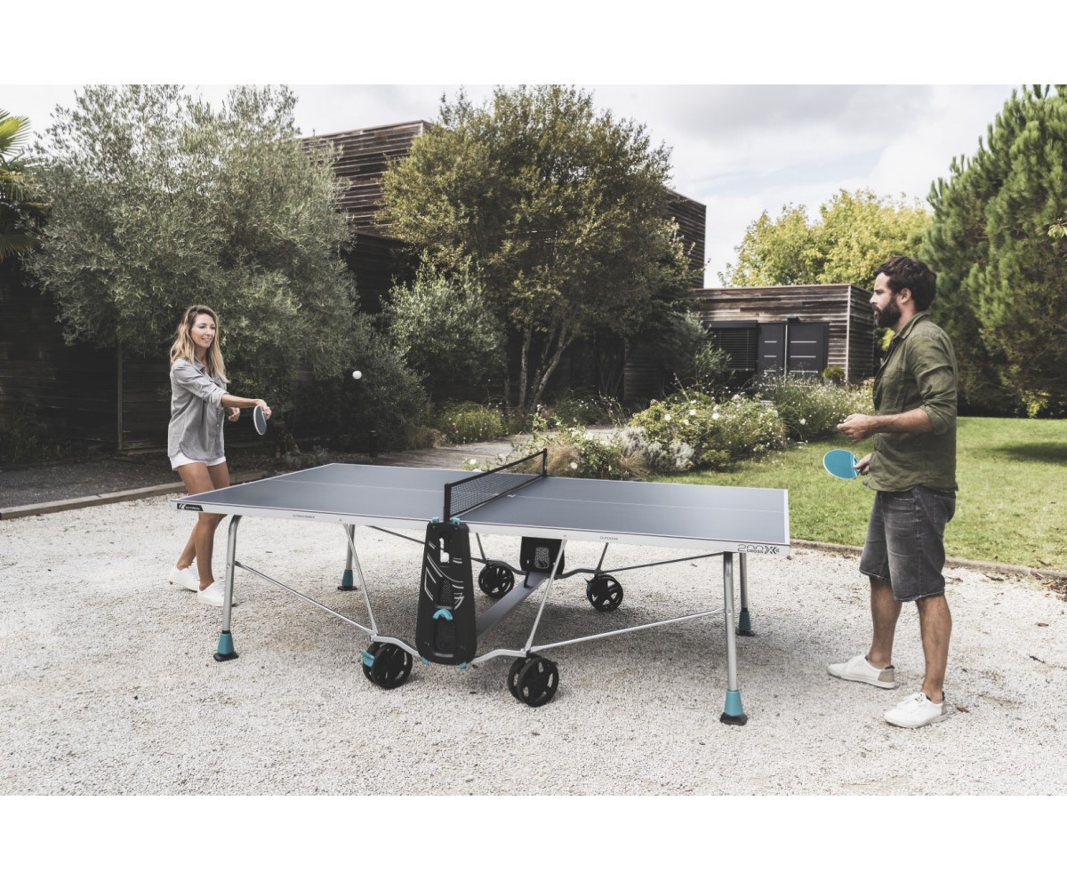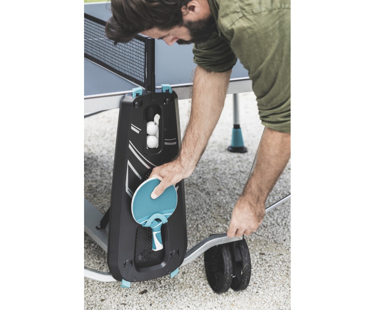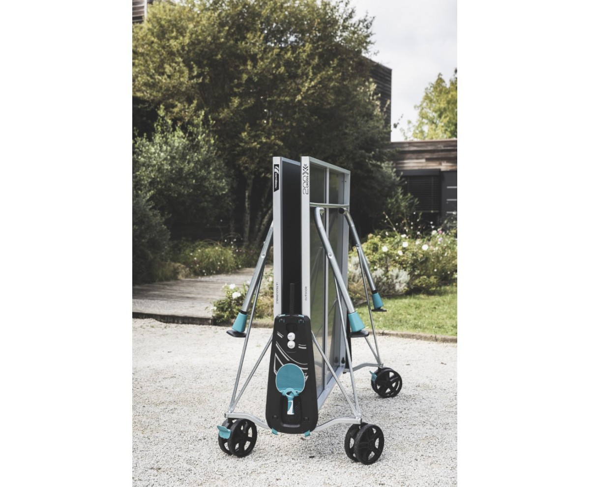 Покриття SOFTMAT зменшує відблиски від сонця, а система регулювання ніжок дозволяє встановити стіл на будь-якому типі ґрунту — газоні, гравії чи навіть піску. Конструкція з антикорозійного Aluzinc® гарантує тривалий термін служби, а зручні функції — простоту експлуатації та зберігання. Надійна система блокування та компактне складання роблять Cornilleau 200X безпечним навіть у побутових умовах.