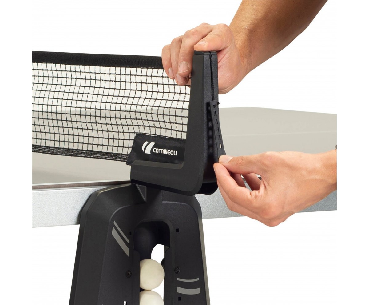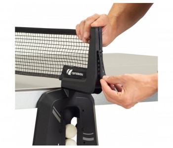 Ігрова сітка з регулюванням натягу і висоти йде в комплекті; сітка автоматично складається при складанні тенісного столу.