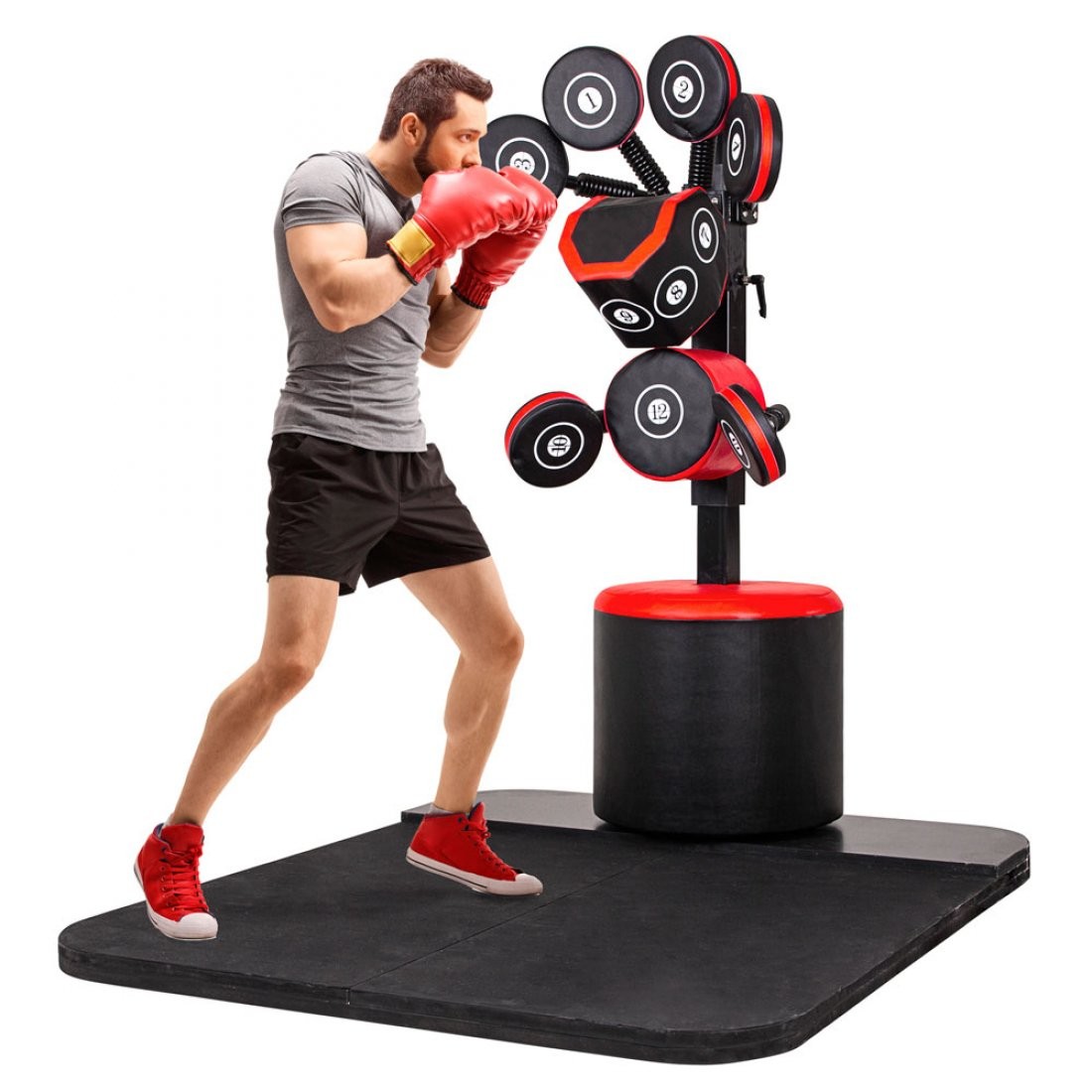 Регульований тренажер BOX Tower MMA Pro для відпрацювання ударів з суперволоконной шкіри, запатентована конструкція пружинного важеля забезпечує оптимальне поглинання ударів для максимальної ефективності і запобігання травм. Форма красивіша, принесе вам новий досвід.
