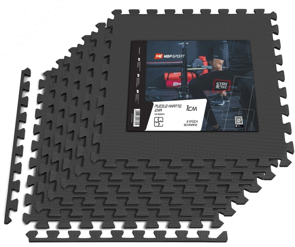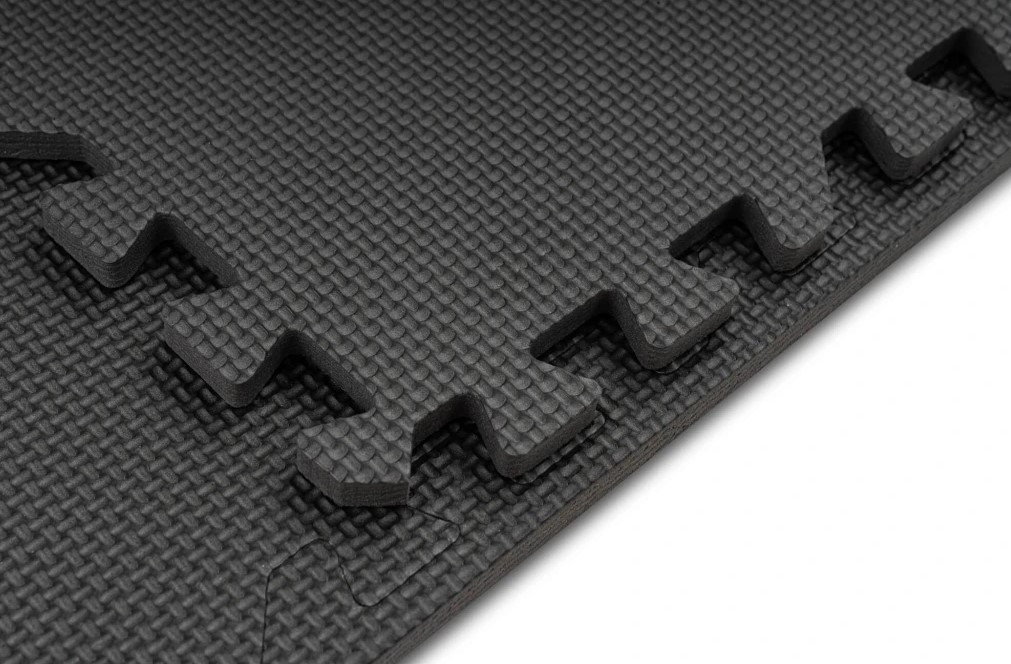 Килимок-пазл EVA HS-A010PM чорний - універсальний продукт, що гарантує захист підлоги під час домашніх тренувань! Спортивний килимок виготовлений з піни EVA - нековзного матеріалу з амортизуючими та ізолюючими властивостями, що робить його чудовою основою для всіх видів спортивного обладнання: велотренажерів, орбітреків, гребних тренажерів, бігових доріжок або тренувальних лавок. Крім того, килимок-пазл можна використовувати для силових вправ - тренування зі штангою або гирями будуть безпечнішими та комфортнішими.