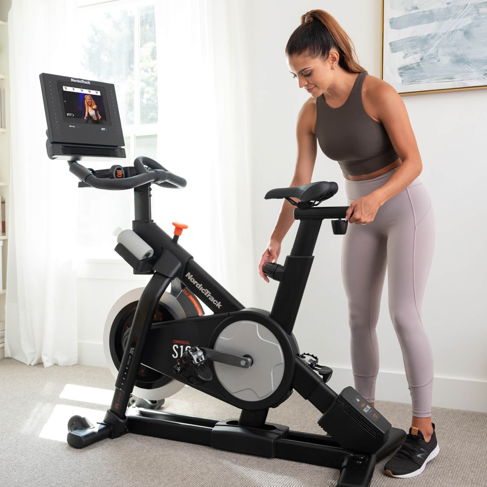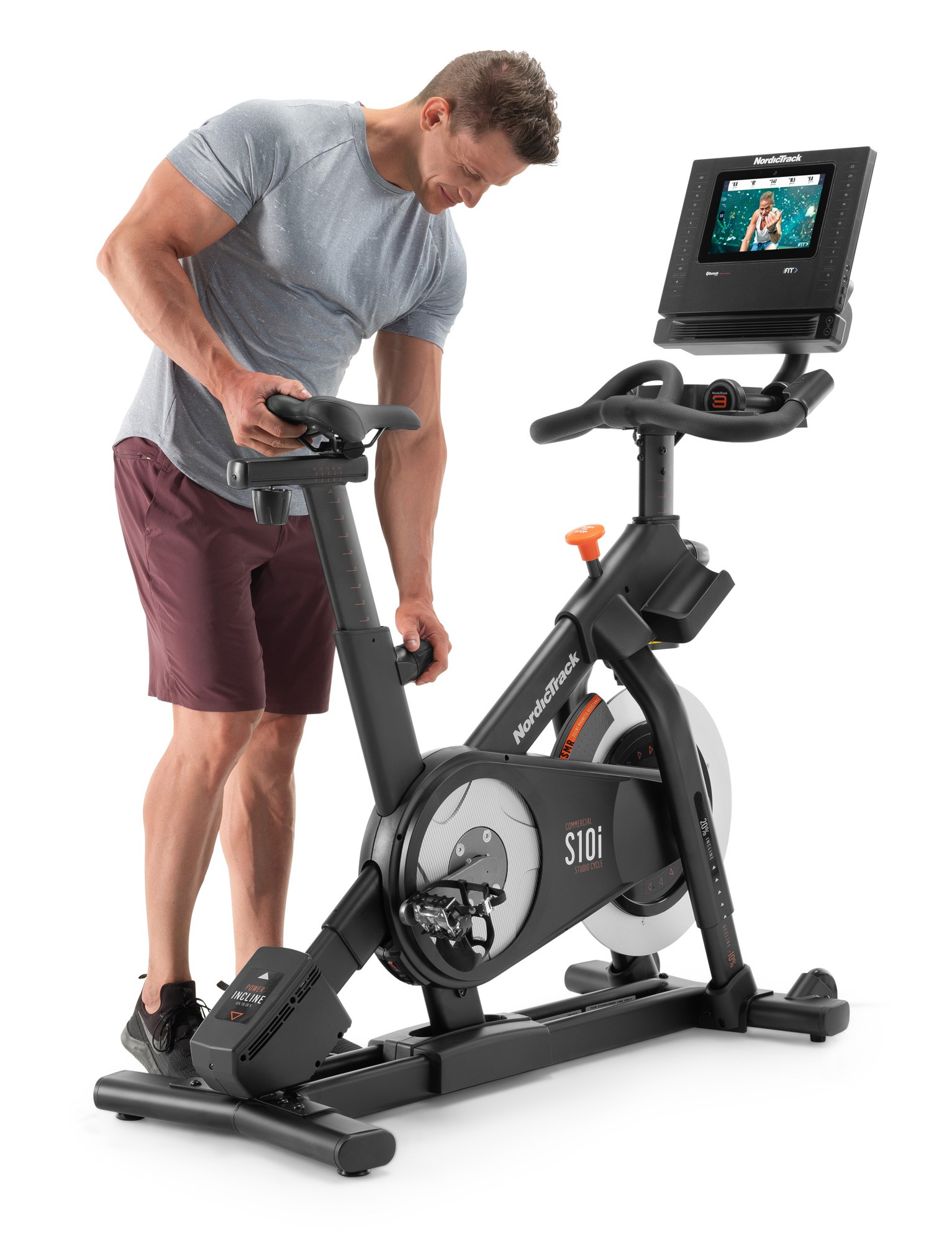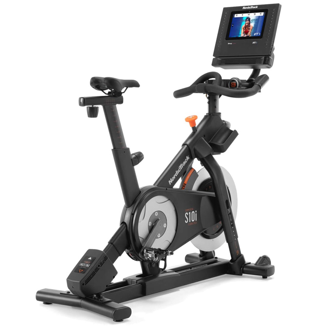 Спінбайк NordicTrack Commercial S10i NTEX03121, завдяки своїй комфортній конструкції, є ідеальним тренажером для інтенсивних тренувань. Його регульоване м'яке сидіння гарантує максимальний комфорт для ваших занять. Цей тренажер-велосипед має інноваційний дизайн з 10-дюймовим сенсорним екраном для найбільш цікавих тренувань. Система Touch Control забезпечує найкращі і найбільш зручні настройки кута нахилу, дозволяючи змінювати його одним натисканням кнопки. У комплект входять також пара гантелей на спеціальній підставці, за допомогою яких можна урізноманітнити тренування новими варіантами вправ.