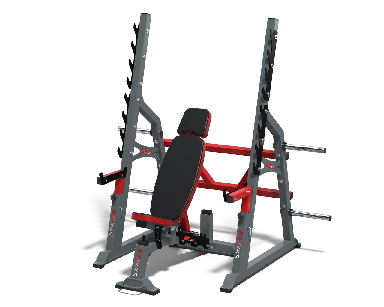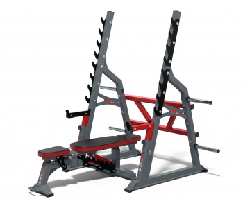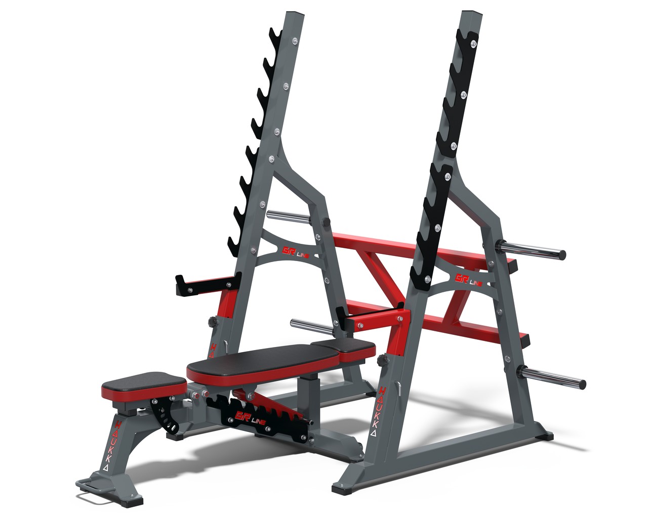 Стійки для присідання багатофункціональні. У конструкції закладена можливість виконання тренувань зі значними обтяженнями вагою до 400 кг і великим функціоналом. Такі стійки ставлять в офіси, облаштовуючи невеликі спортзали, адже тут можна повісити ззаду запасні млинці, швидко міняти ваги коли займаються кілька людей. На тренажері можна виконувати і присідання зі штангою, і жим лежачи, і жим сидячи, а переставляти висоту під штангу немає необхідності, так як гаки заготовлені на все висоти. Встановлені страхові упори надійно можуть підхопити штангу під час одиночних тренувань. Конструкція страхових упорів така, що при необхідності, їх можна зняти і вони абсолютно не будуть заважати.