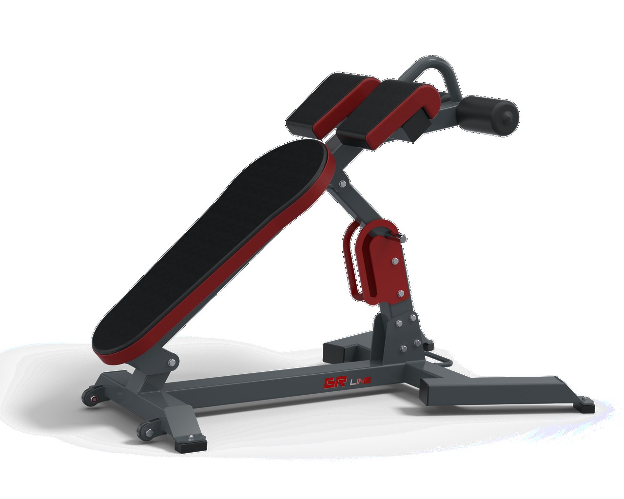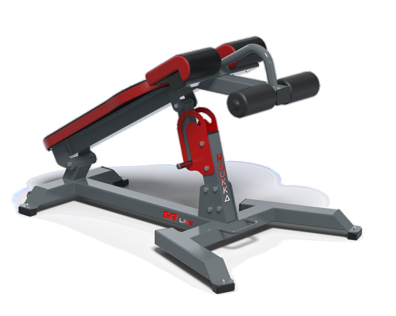 Потужна рама тренажера здатна витримати спортсменів разом з обтяженнями. В осі тренажера встановлені підшипники, що забезпечує потужність тренажера і відсутність базікання. Посадка на тренажер полегшена за рахунок ручки біля валиків, яка виконана в зігнутій формі для безпеки. Для зручності перенесення лавки по залу, в задній частині встановлені ролики, а в передній частині знизу є зручна ручка. Подушки підвищеної щільності не продавлюються навіть з обтяженнями.