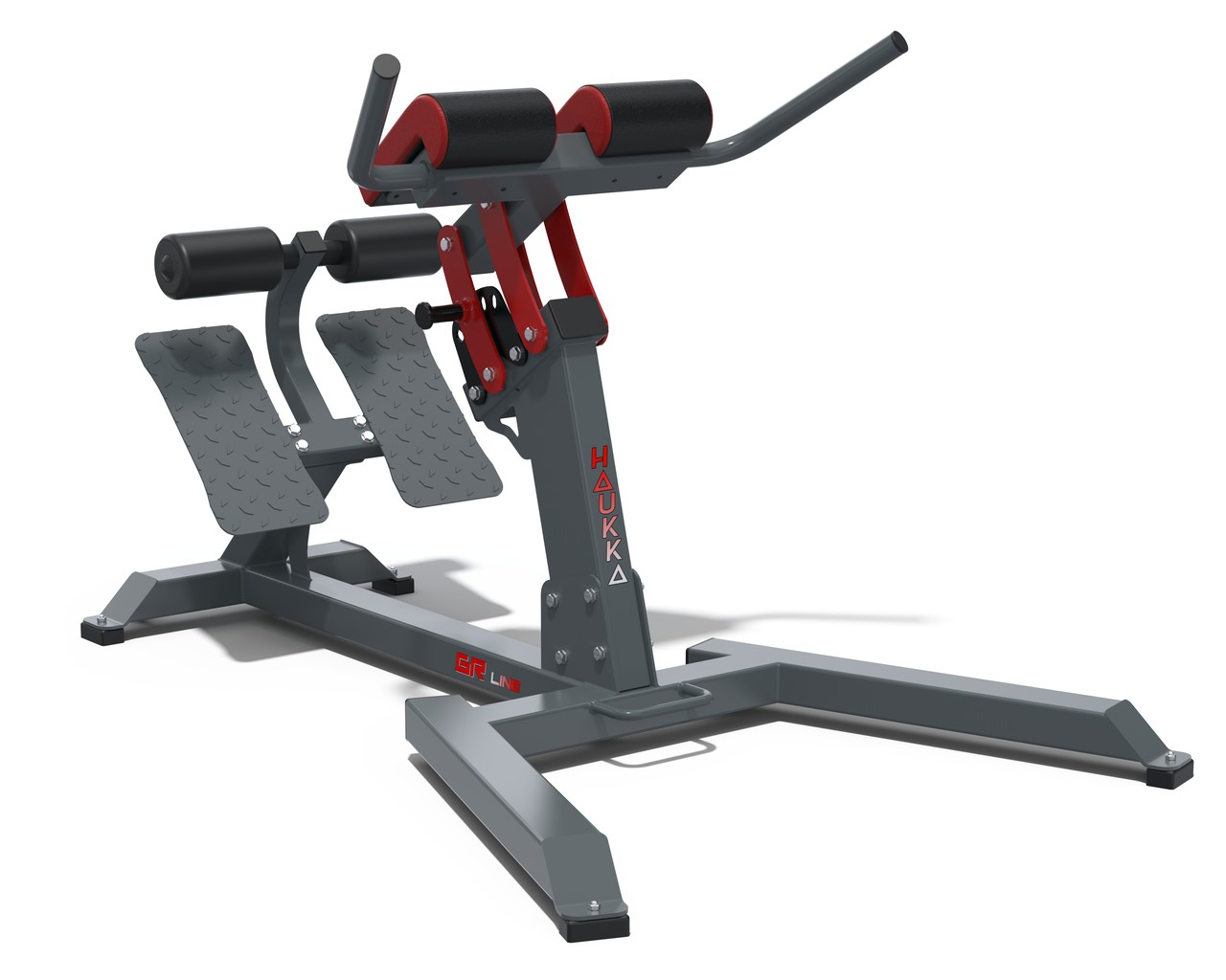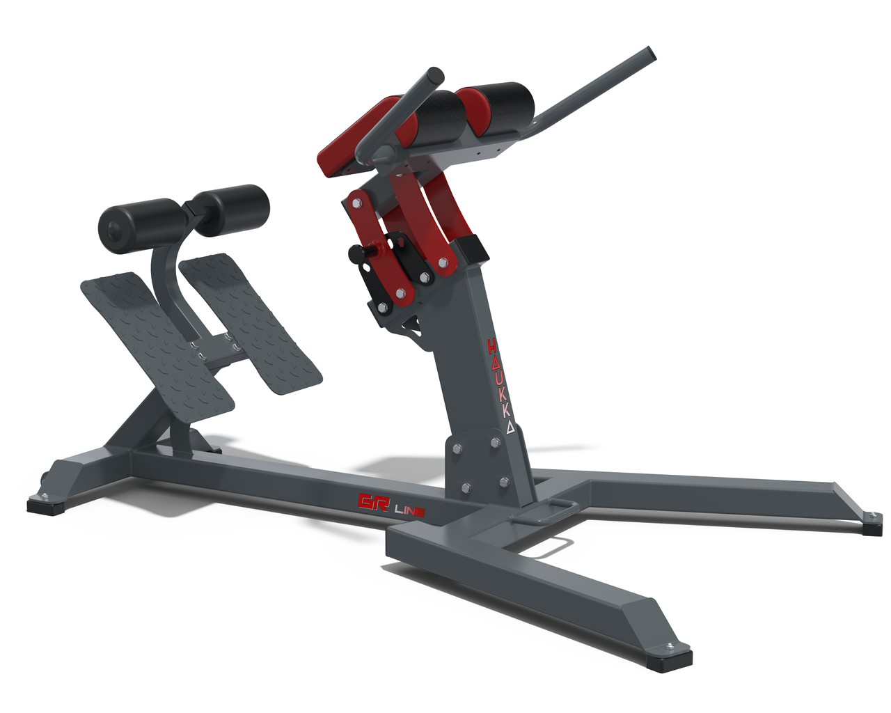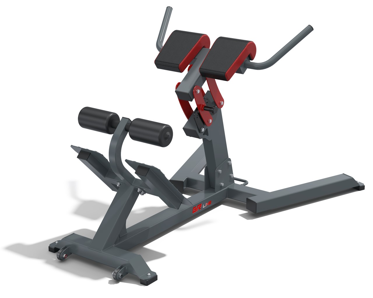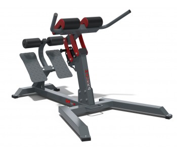 Професійний тренажер гиперєкстензия. Призначений в першу чергу для тренування нижньої половини м'язового корсету хребта, хоча значно виходить також навантажувати і сідничні м'язи.