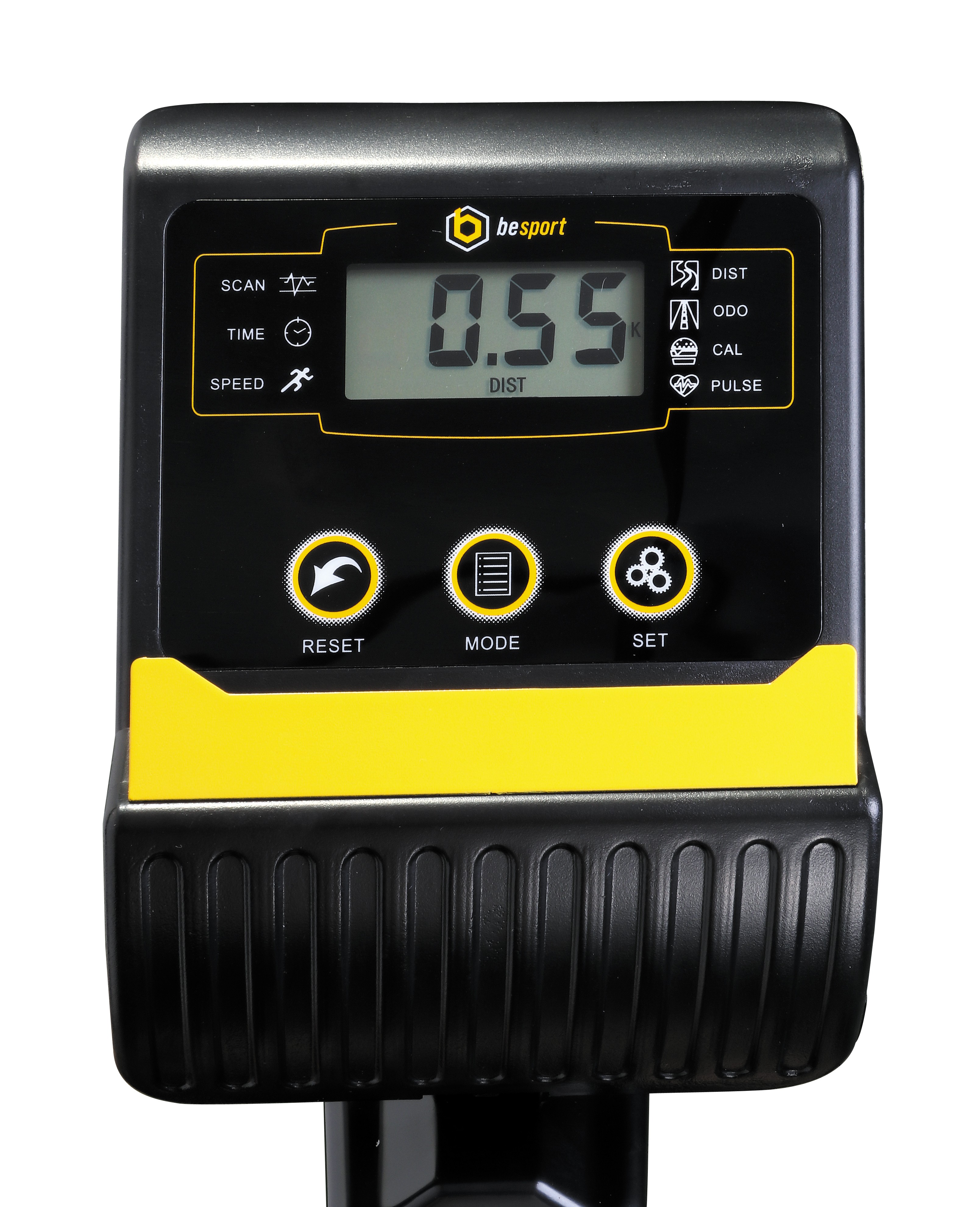 Сучасний велотренажер від Besport оснащений зручним екраном, на якому відображаються всі необхідні для тренування показники - час, швидкість, дистанція, витрачені калорії, загальний пробіг велотренажера і пульс.