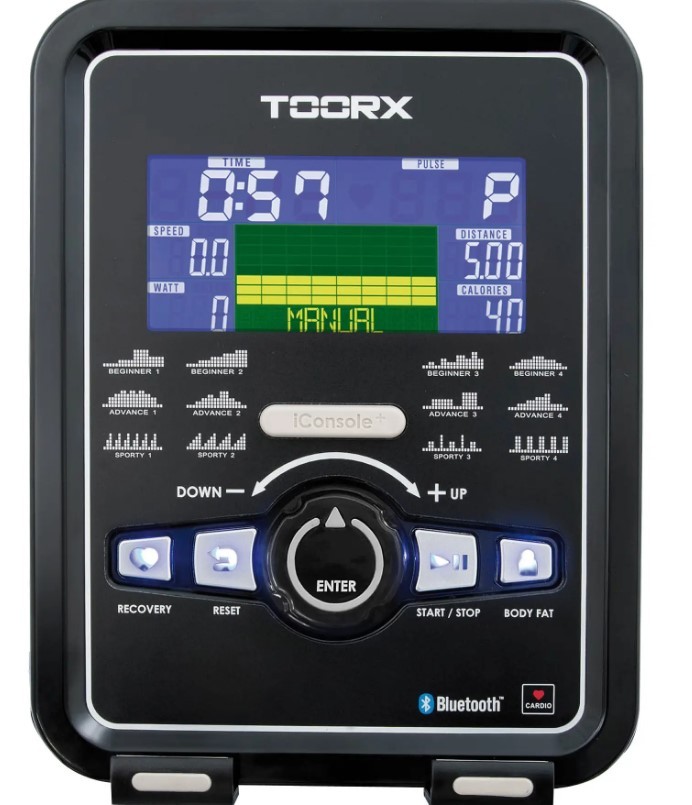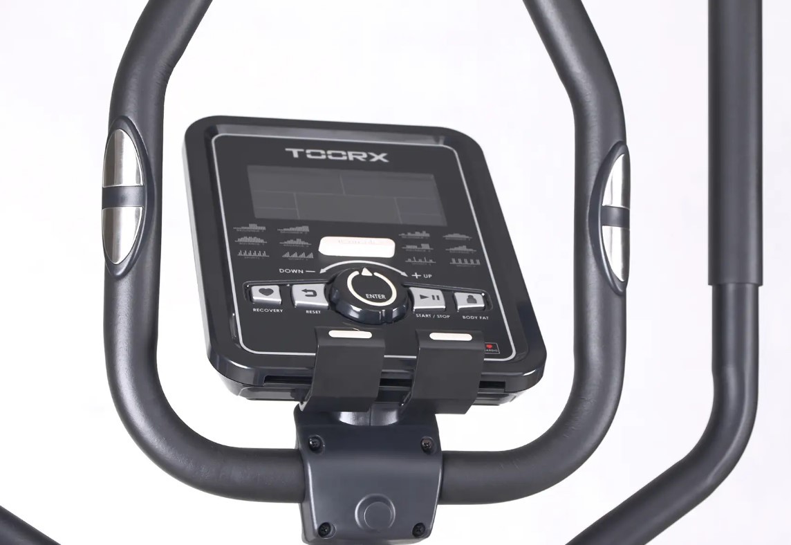 Орбітрек Toorx Elliptical ERX 300 (ERX-300) з преміальної лінійки Chrono Line італійського виробника Garlando S.p.A. призначений для інтенсивного кардіотренування в домашніх умовах. Тренажер має 32 рівня навантаження, що регулюються за допомогою сучасного комп'ютера. 16-кілограмовий маховик створює чудову плавність ходу, знижуючи навантаження на суглоби та мінімізуючи ризик отримання травми в процесі занять. Орбітрек розрахований на вагу до 150 кг, а довжина кроку 41 см припаде до вподоби вимогливим користувачам. Вбудований приймач для бездротового датчика вимірювання пульсу буде доречним під час тренування по одній з чотирьох пульсозалежних програм. Консоль тренажера має тримач для смартфона / планшета і підтримує Bluetooth для інтеграції з популярними додатками iConsole+ Training та Kinomap, які перетворять монотонне тренування в захоплюючий процес.