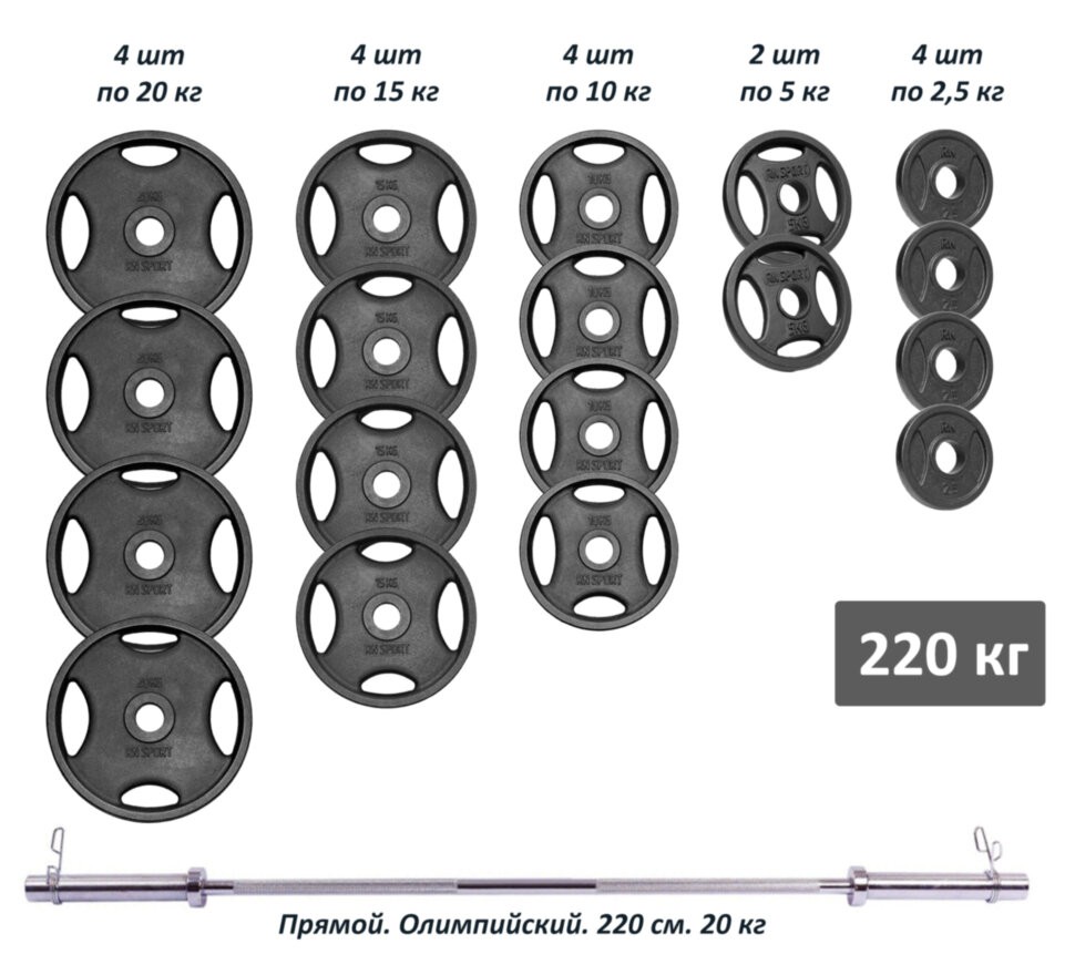 Професійний RN-Sport Rod з металевими дисками у порошковому фарбуванні 220 кг RN_Ch220