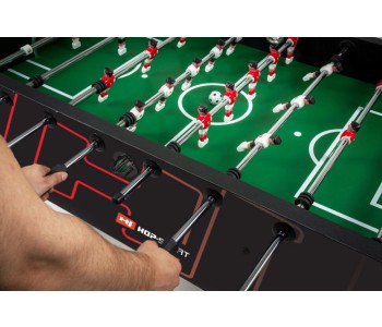 Настільний футбол Evolution від Hop-Sport - це гарантія відмінної домашньої розваги під час зустрічей із друзями чи сімейних вечорів. Завдяки настільному футболу Evolution кожен матч буде суцільним задоволенням. Стіл виготовлений з якісної та вологостійкої плити МДФ, покритої шаром ламінату для захисту від стирання. Створений для вимогливих гравців, він поєднує у собі практичні рішення, що підвищують комфорт гри, має сучасний стриманий дизайн.