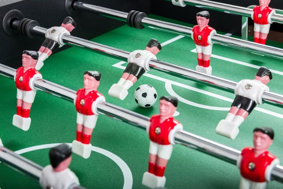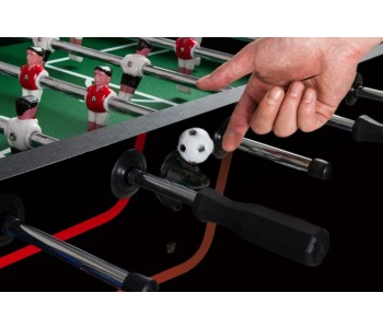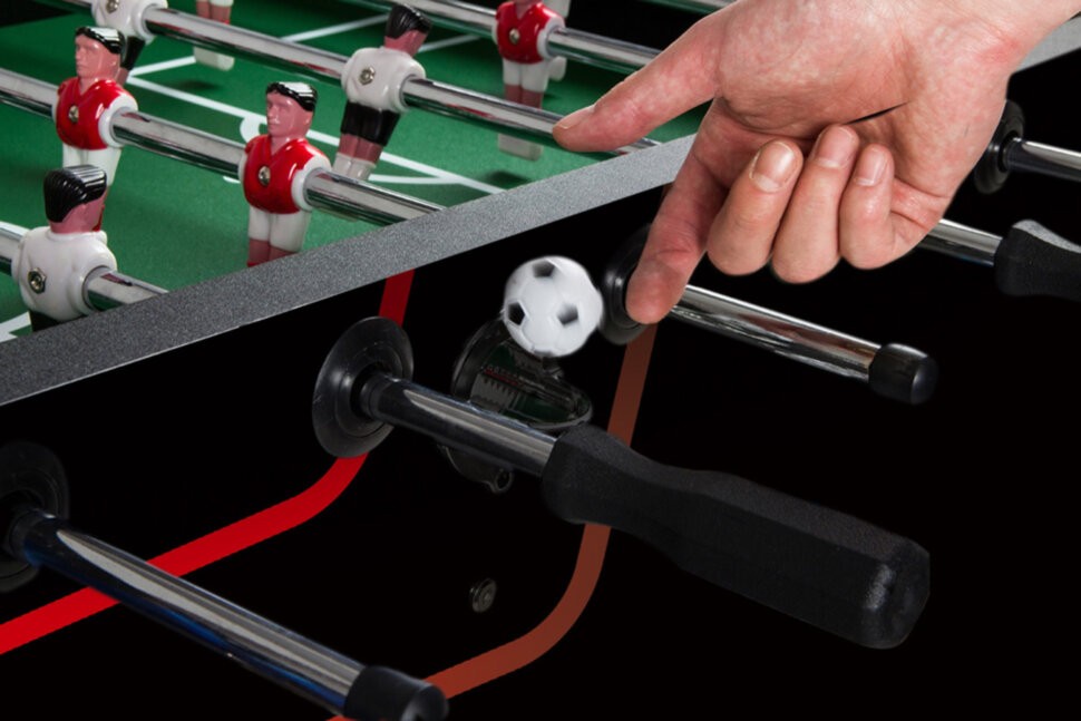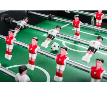 Ігрове поле з нейтральним зеленим покриттям не відволікає гравців та забезпечує повний контроль над траєкторією м'яча. Ручні лічильники голів розміщуються по обидва боки поля. Фігурки для настільного футболу, встановлені на сталевих напрямних, фіксуються гумовими стопорами. Настільний футбол виготовлений із загартованої плити МДФ, покритої шаром ламінату для більшої стійкості до стирання. Фігури гравців розміщуються на столі за системою 3:5:2:1. У набір входять два м'ячі.