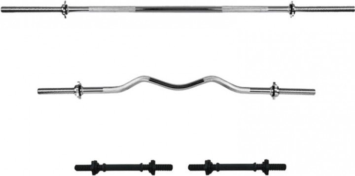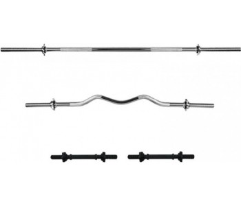 Кількість грифів у наборі: 4 шт. (прямий 180 см, кривий W образний, гантельний гриф 2 шт.)