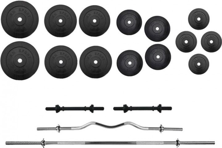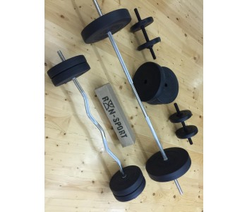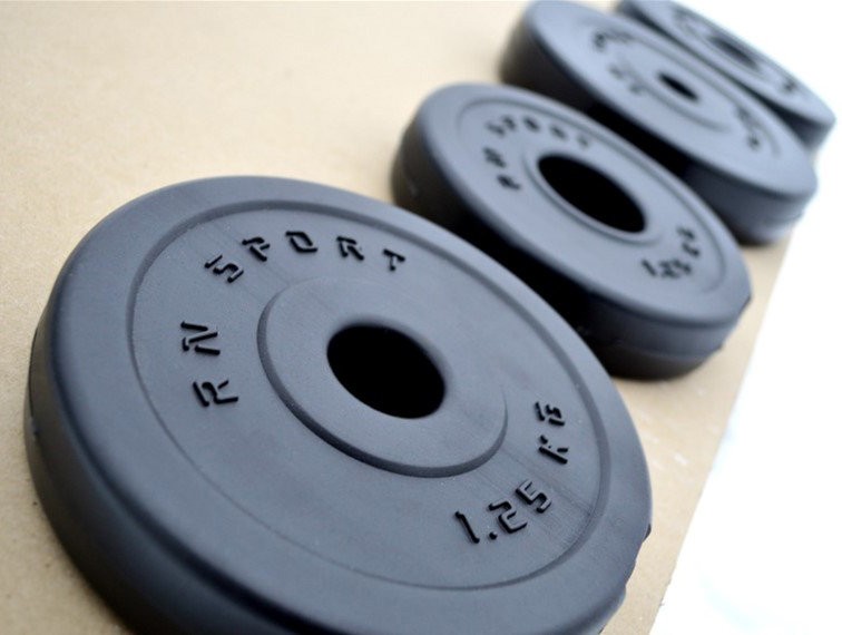 Набірні штанги та гантелі виробника RN-Sport складаються з чотирнадцяти дисків різної ваги, що дозволяє регулювати навантаження з мінімальним кроком ваги.