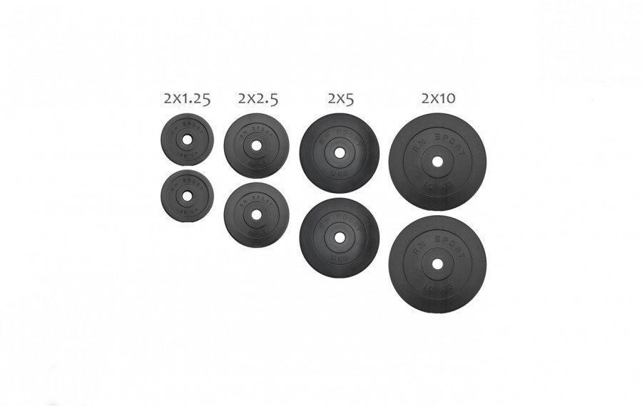 Головна > Залізо > Диски > 37 кг (2x1.25, 2x2.5, 2x5 і 2x10) пластикові диски (31 мм) RNbitset37
