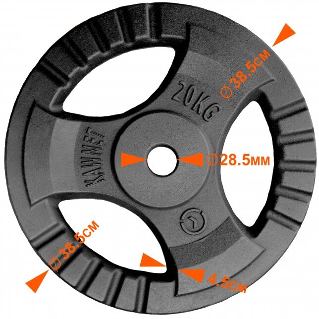 Головна > Залізо > Диски > Чорт (диск) 20 кг для гантелей (стрижнів) з потрійним зчепленням Ø28 мм