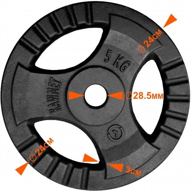 Головна > Залізо > Диски > Чорт (диск) 5 кг для гантелей (стрижнів) з потрійним зчепленням Ø28 мм
