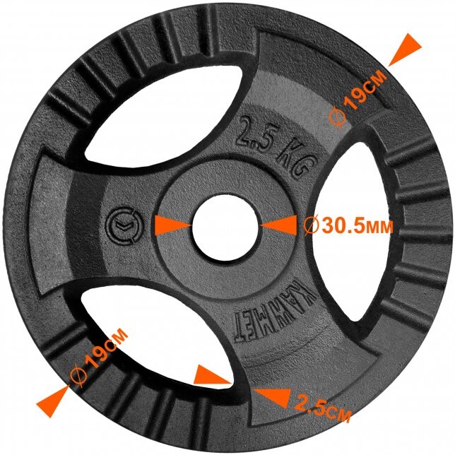 Чорт (диск) 2,5 кг для гантелей (стрижнів) з потрійним зчепленням Ø30мм