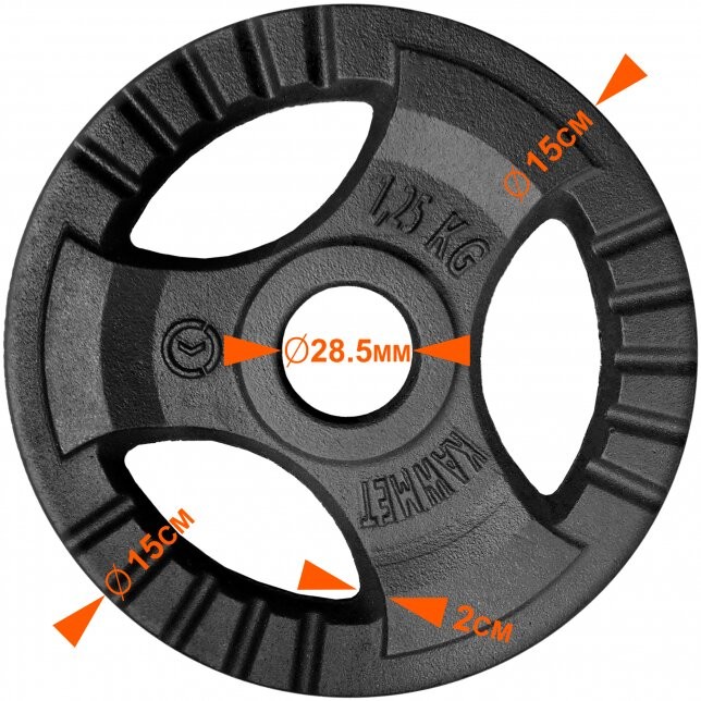 Диск 1,25 кг для гантелей (стрижнів) з потрійним зчепленням Ø28 мм