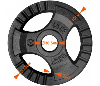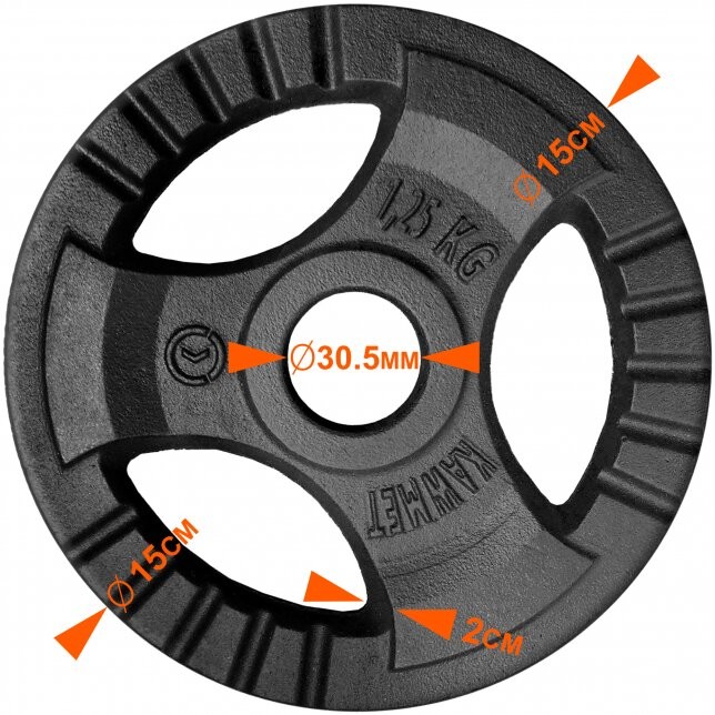 Головна > Залізо > Диски > Чорт (диск) 1,25 кг для гантелей (стрижнів) з потрійним зчепленням Ø30 мм