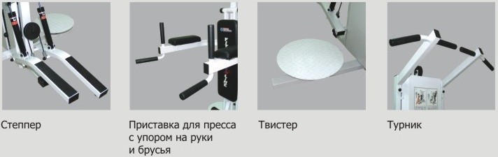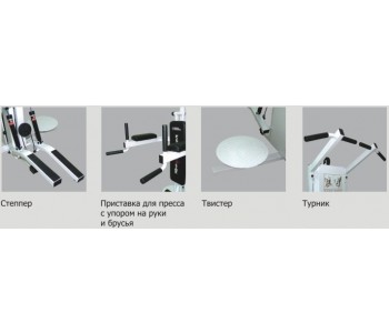 Фітнес станція ІнтерАтлетика Максима ST006-B комплектується наступними тренажерами та елементами, за допомогою яких можна ефективно опрацювати все тіло: