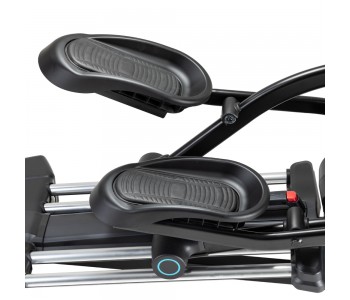 У тренажера є дві пари ручок-одна пара рухомих ручок і одна пара фіксованих ручок з вбудованими датчиками серцевого ритму . В результаті вам не потрібно використовувати руки під час тренування, якщо ви цього не хочете. На фіксованих ручках також є практичні кнопки, що дозволяють швидко змінювати рівень опору . Регульований нахил забезпечує більш інтенсивне тренування. Оскільки вам потрібно сильніше крутити педалі при підйомі в гору (як на справжньому велосипеді), Це дозволяє спалювати більше калорій і задіяти різні групи м'язів, зокрема сідниці і підколінні сухожилля. Цей еліптичний тренажер пропонує безліч чудових програм! На сенсорній панелі управління ви можете вибрати одну з 10 попередньо встановлених програм, кожна з яких має свій профіль місцевості. А якщо цього недостатньо, ви можете створити і зберегти свою власну програму. Ви також можете підключити нагрудний ремінь і використовувати популярну програму HRC, яка автоматично регулює рівень опору, щоб утримувати вас в цільовій зоні частоти пульсу. Програма WATT працює за тим же принципом, що і програма HRC, з тією лише різницею, що замість цільової зони частоти пульсу ви встановлюєте цільову потужність. А коли ви закінчите, програма відновлення надасть вам інформацію про вашу фізичну форму.
