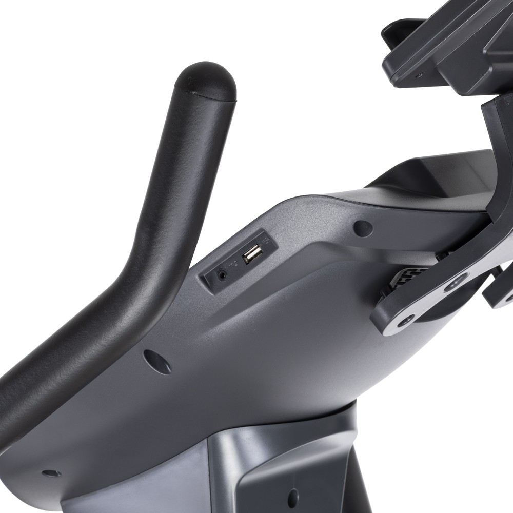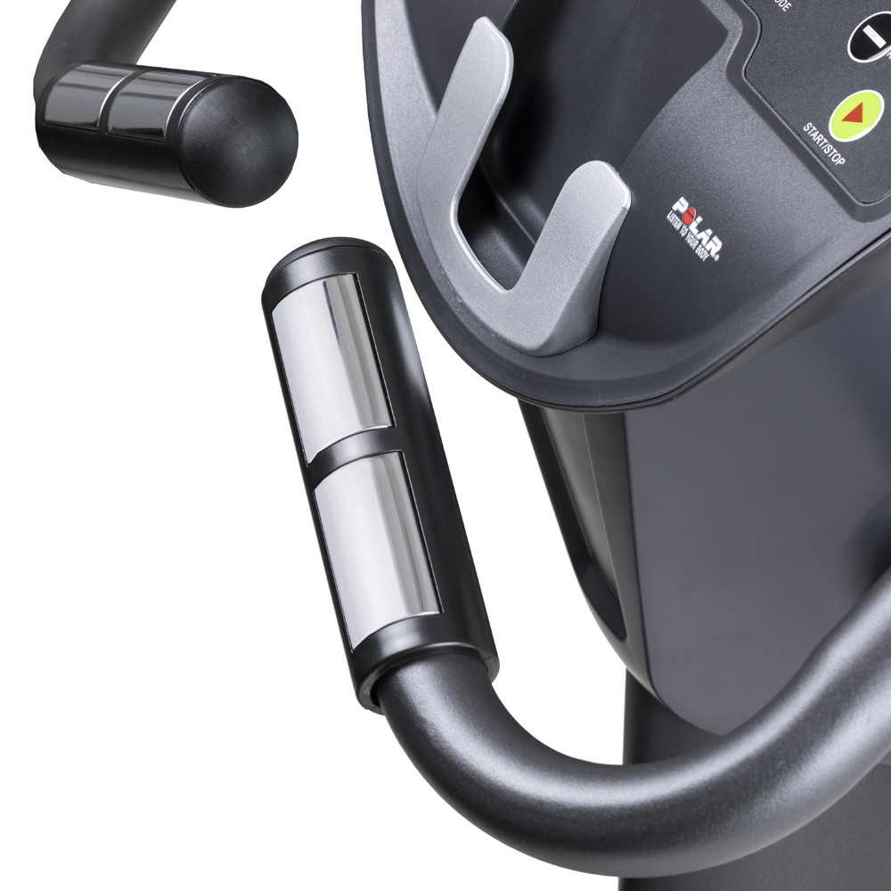Ми завжди ставимо комфорт користувача на перше місце. Ось чому під дисплеєм є тримач для пляшки з водою, який допоможе вам уникнути зневоднення під час тренування. Що стосується технологій, то прямо над дисплеєм є практичний тримач для планшета, тримач для смартфона внизу і порт USB збоку від дисплея, який дозволяє заряджати пристрої під час тренування. Крім того, аудіороз'єм і вбудовані динаміки дозволяють використовувати музичний програвач і слухати свої улюблені пісні. Ручки з вбудованими моніторами серцевого ритму допоможуть вам відстежувати частоту серцевих скорочень.