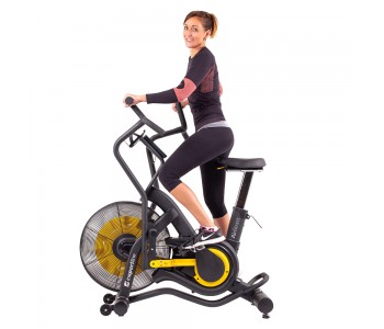 Завдяки унікальній системі повітряного гальмування вам не потрібно регулювати опір. Тяжкий маховик вагою 4,8 кг обертається залежно від того, наскільки сильно ви крутите педалі. Чим сильніше ви крутите педаль, тим вищий опір (регулювання опору відбувається швидко та плавно). Завдяки цій технології ви можете крутити педалі з опором від 3 до 1260 Вт, що дозволяє виконувати різноманітні тренування.