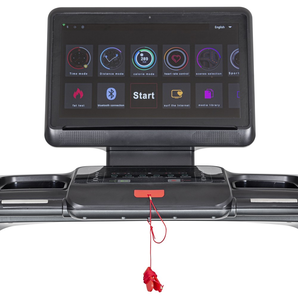 Бігова доріжка вищого класу inSPORTline Gardian G12TF пропонує все, що користувач сподівається знайти в сучасному, добре обладнаному тренажерному залі: велике бігове полотно, видатні функції та новітні технології ! Кольоровий екран дозволяє підключатися до Інтернету, дивитися улюблені відео чи створювати та слухати свій власний плейлист із мотиваційною музикою!