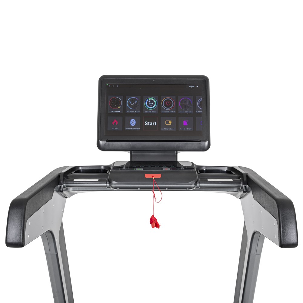 Міцна рама розрахована великі навантаження. Завдяки двигуну потужністю 8 л.с. цю бігову доріжку можна використовувати не тільки для бігу, але і для ходьби і бігу підтюпцем. Функції бігової доріжки також на найвищому рівні. Ви можете вибирати з цільових програм, популярних програм HRC і профільних програм користувача. Режими «Бігова доріжка» та «Віртуальний біг» - приємне доповнення.