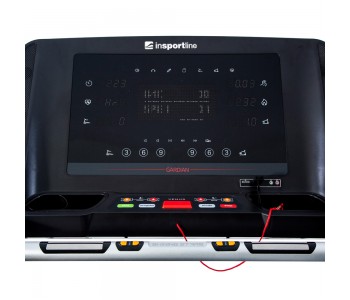 Вбудована комп'ютерна пам'ять бігової доріжки Insportline Gardian G8 має цілих 24 готові програми, 2 користувацькі програми та 3 програми HRC, які працюють на основі частоти серцевих скорочень бігуна, записаної датчиками, вбудованими в ручку (50-140 BPM - ударів за хвилину). Великий, зручний для читання дисплей (18,5 '') відображає всю необхідну інформацію (час, швидкість, нахил, відстань, частоту серцевих скорочень та спалені калорії). Швидкість та нахил ременя можна легко регулювати за допомогою елементів керування на дисплеї. Крім того, бігова доріжка оснащена функціональними гаджетами, такими як: USB-порт, MP3-плеєр з динаміками, роз'єм для навушників та слот для карти пам'яті. Цікавим рішенням є також крокомір, вбудований під панель, і функція Matrix, яка незалежно від налаштувань відображає 400-метрові кола, що робить навчання набагато приємнішим. Завдяки цим властивостям бігова доріжка Insportline Gardian G8 є ідеальним обладнанням, яке відповідатиме очікуванням кожного користувача!