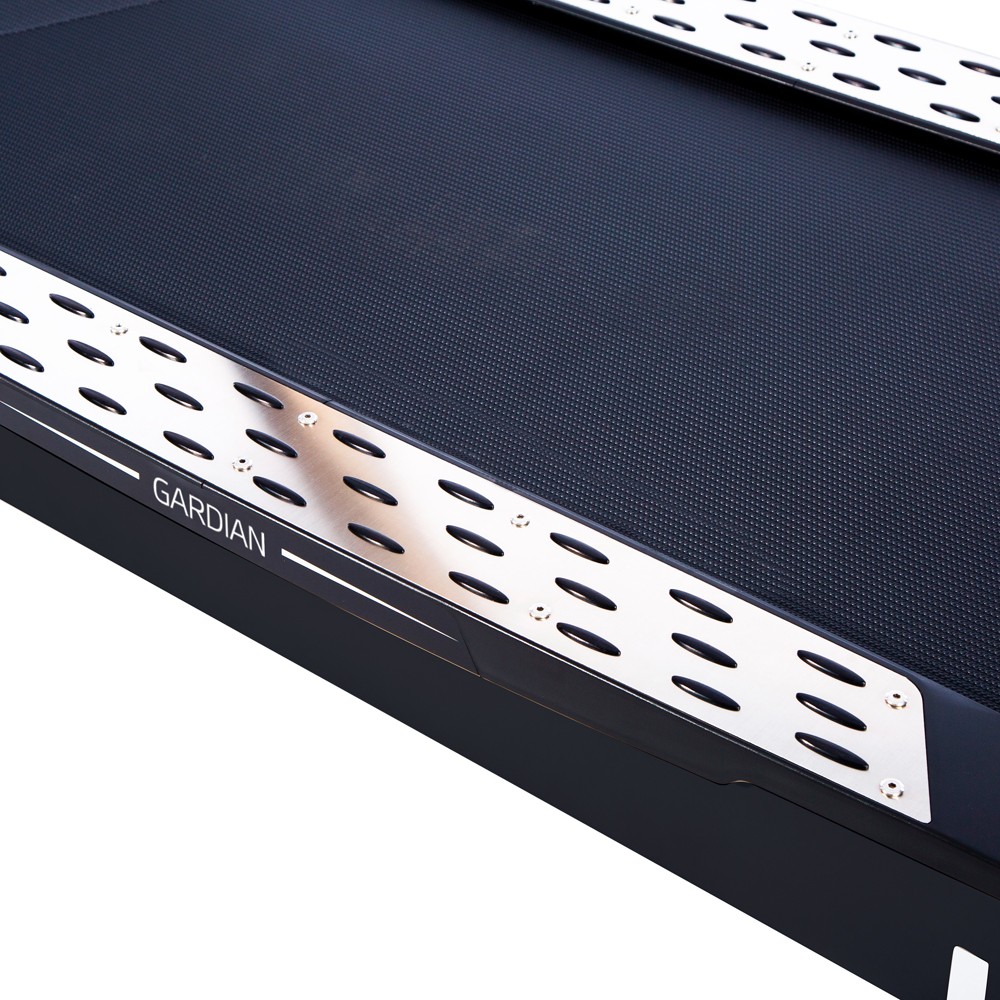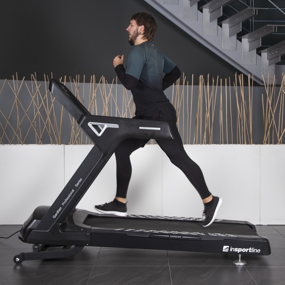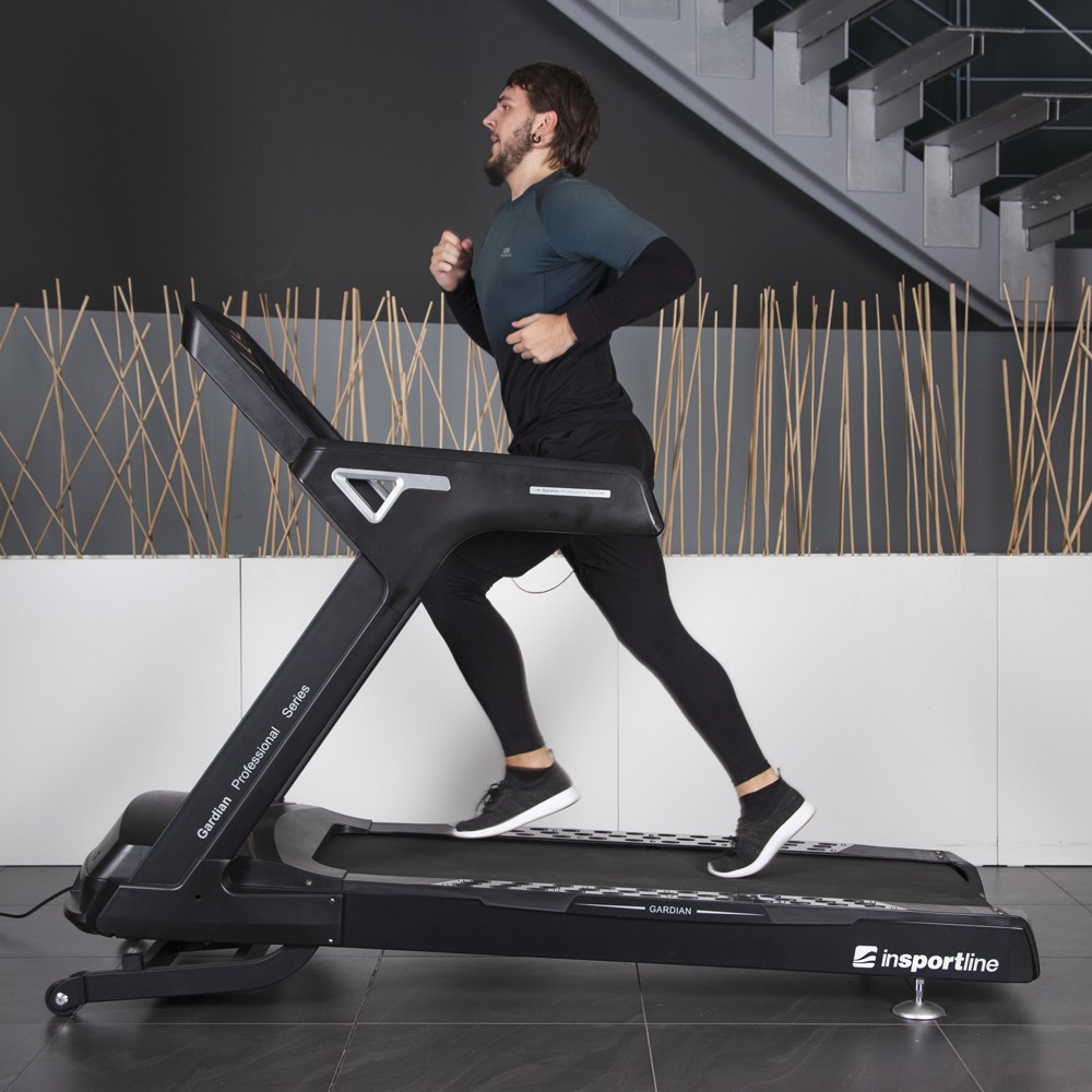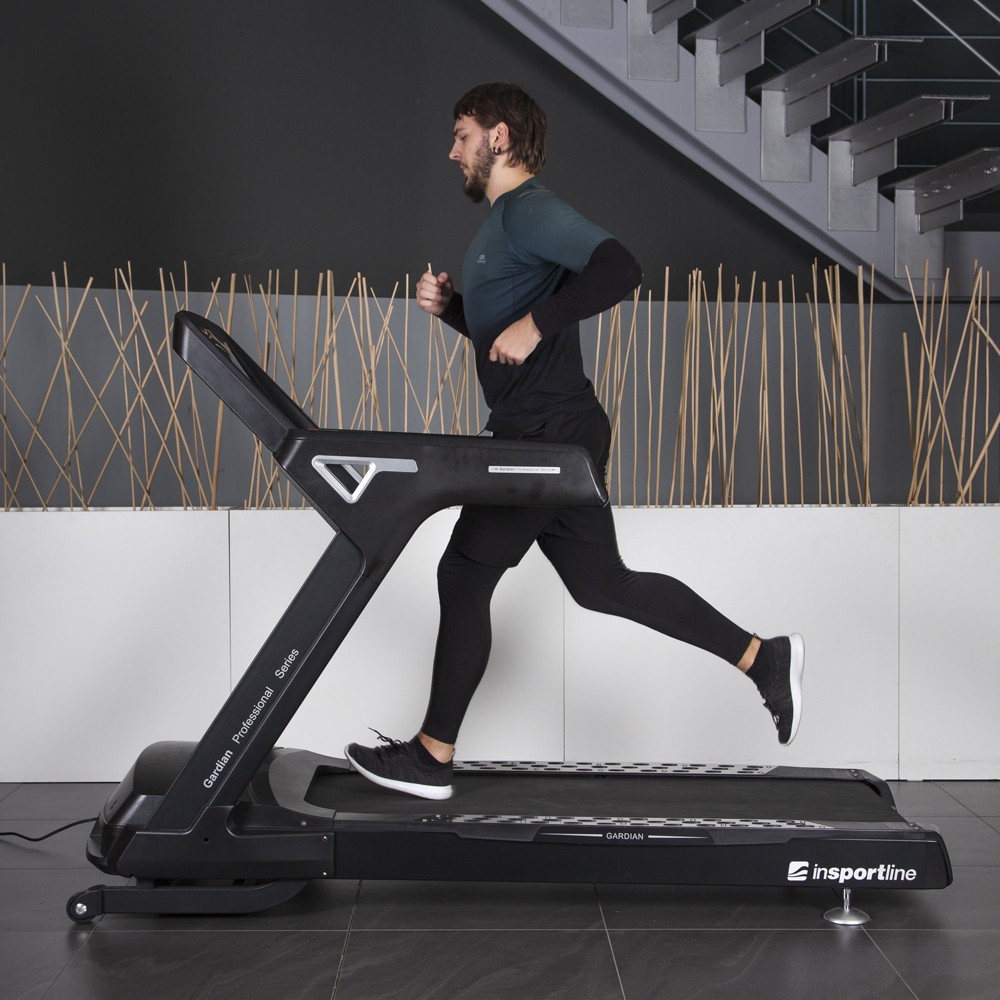 Електрична бігова доріжка Insportline Gardian G8 - це професійна, високоякісна бігова доріжка з сучасним, елегантним дизайном. Надійна конструкція, надійний двигун змінного струму з потужністю до 6 к.с., вантажопідйомність до 180 кг та вагою машини до 166 кг, гарантують тривалий термін служби та безперебійну роботу обладнання. Нековзні платформи, поручні та аварійне гальмо забезпечують максимальний рівень безпеки. Великі розміри бігового ременя (150x51) значно підвищують комфорт вправ. Обладнання забезпечене стопорними гвинтами, завдяки яким можна легко зменшити нерівності в землі. Діапазон швидкостей від 1 до 20 км / год з регулюванням кожні 0,1 км / год та кут нахилу до 7,5% задовольнять навіть найвимогливіших користувачів.