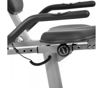 Горизонтальний велотренажер inSPORTline Rapid RMB - якісний велотренажер з великою кількістю функцій. Міцна конструкція з надійною спінкою підходить для людей з надмірною вагою, хто має обмежені можливості пересування, або для людей похилого віку, які хочуть тримати себе у формі. Ергономічне сідло з можливістю регулювання забезпечує зручне положення на сидіння під час вправ. Маховик вагою 6 кг і магнітна система гальмування, яка керується вручну, мають 8 рівнів навантаження.