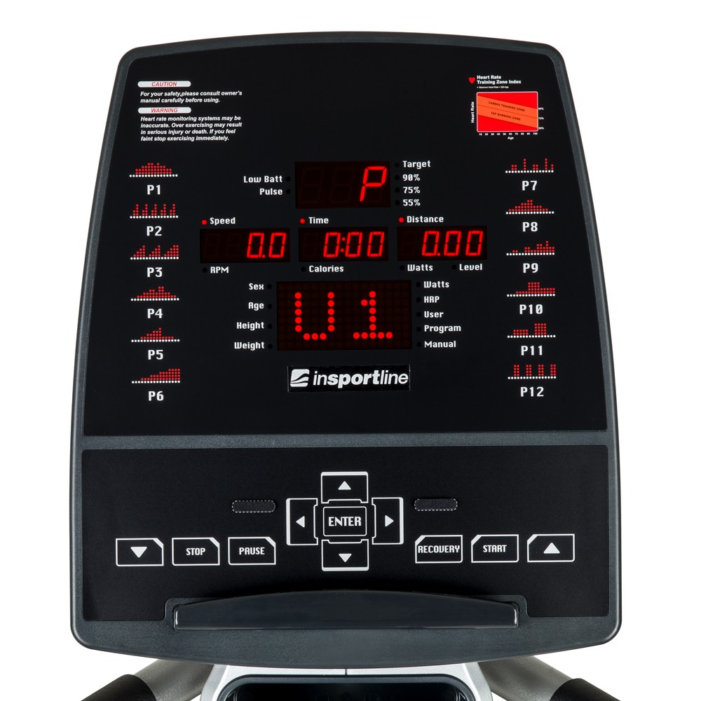 Горизонтальний велотренажер inSPORTline Gemini R200 - це професійний пристрій, який ідеально підходить для кожного тренажерного залу. Міцна, стійка конструкція гарантує високу вантажопідйомність - до 140 кг. Велотренажер оснащений комп'ютером з великим та чітким РК-дисплеєм, який відображає час, швидкість, відстань, витрачені калорії, пульс, продуктивність та кількість обертів за хвилину. У пам'яті комп'ютера записано 12 попередньо встановлених програм, 4 програми користувача, 4 програми HRC, які працюють на основі серцебиття користувача, зареєстрованого через вбудовані в ручку датчики (50-140 BPM - ударів за хвилину), 3 програми з налаштуванням бажаної мети, програма WATT ( потужність в вт) та ручна програма. Пристрій має вхід USB та 2 аудіо входи, які дозволяють підключати навушники або динаміки.