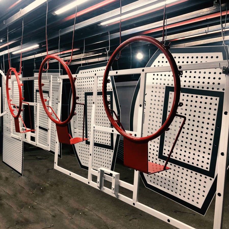 Сильний і надійний дизайн дозволяє протистояти інтенсивній роботі (вандалізм) у громадських місцях. Усі деталі піддаються піскоструминці з високою абразивною сипучою матеріалом і мають подвійне порошкове покриття в наших стандартних кольорах або за згодою з замовником. Це гарантує тривалий блиск, кольорову стійкість і забезпечує особливо тривалий захист від корозії.