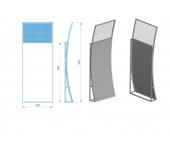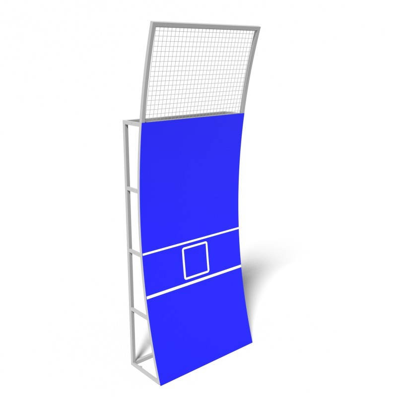 Модульна тенісна стіна біля основи складається з дизайну рами радіусної форми, яка необхідна для правильного відскоку м'яча під час тренувань. Ударна панель збирається за типом Сандвіча з внутрішнім наповнювачем для активного зменшення шуму, коли вдариться тенісна куля, головний аркуш товщиною 3 мм, рамка з спеціальним кріпленням для полоненої сітки з клітиною 40x40 та товщиною мотузки 4,5 мм.