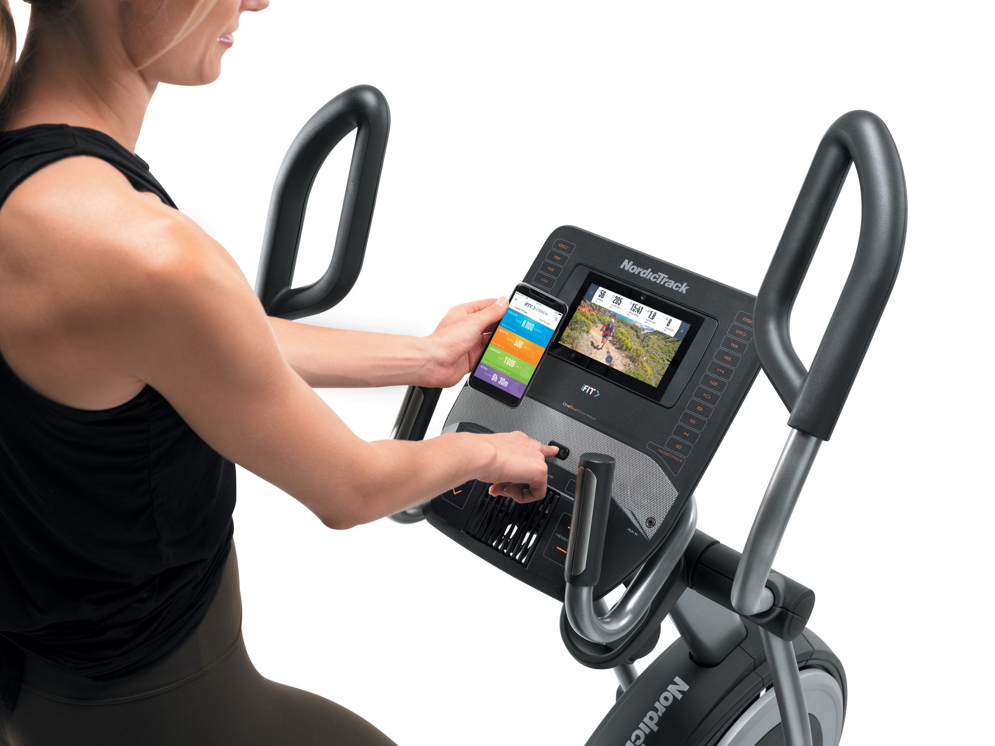 Спробуйте інтегровані тренування iFit, що відображаються на яскравому 7-дюймовому кольоровому сенсорному екрані Smart HD, і подорожуйте світом з дому з елітними тренерами завдяки технології iFit Coach (30-денне безкоштовне членство в iFit включено). Для отримання максимальних результатів тренуйтеся в правильній зоні частоти пульсу, вимірюючи його за допомогою бездротового приймача Bluetooth Smart у нагрудному ремені (в комплект не входить).