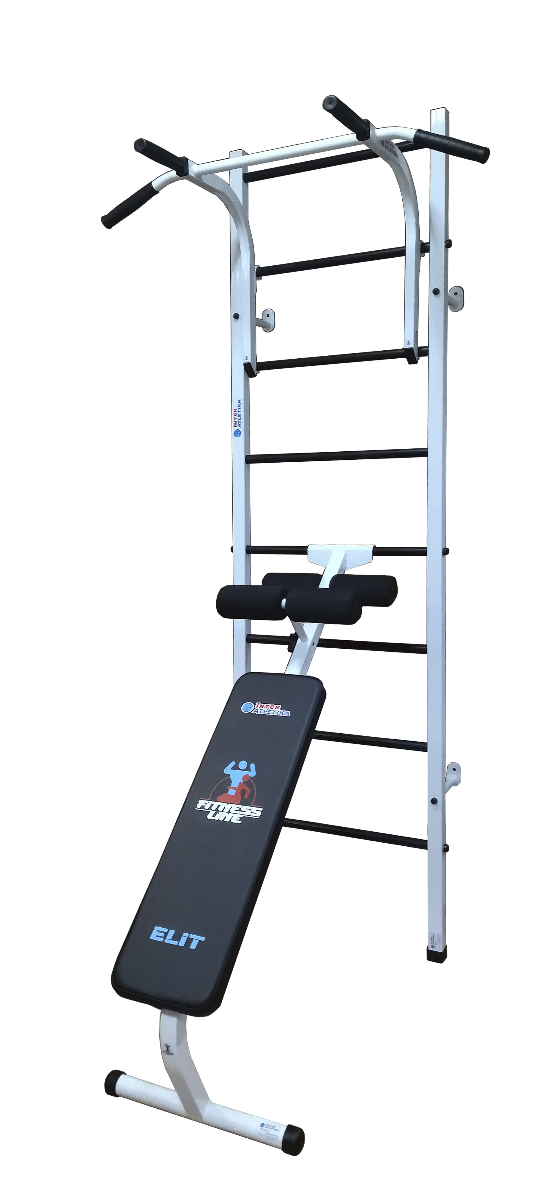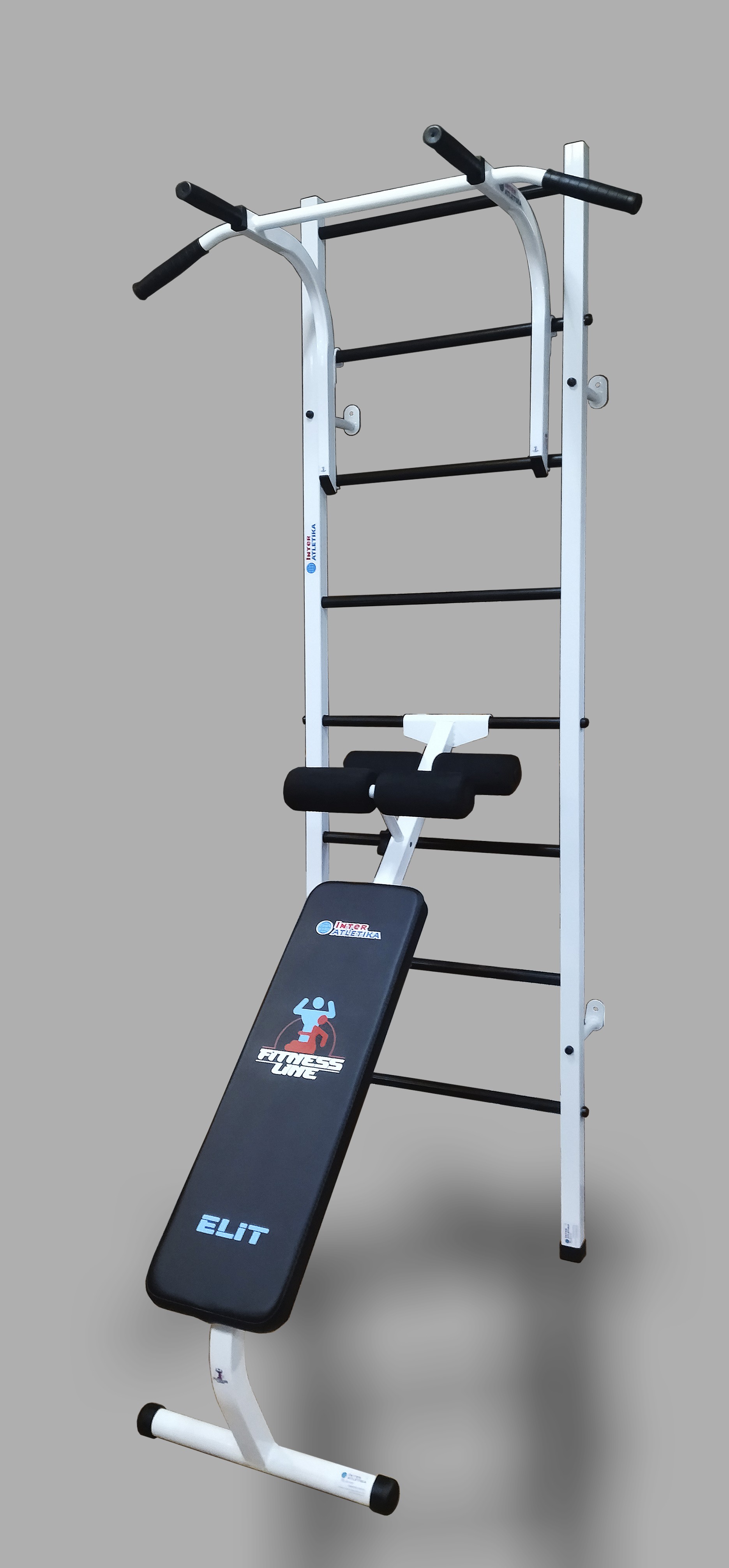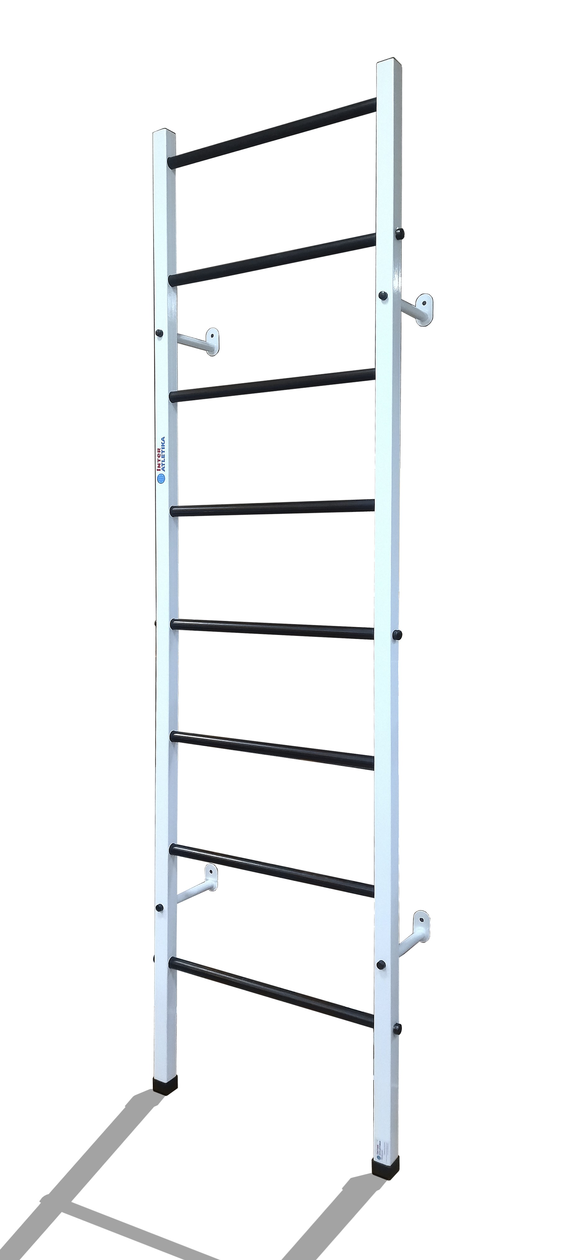 Interatetika Elite 2.4M ST055.1 Елітний елітний обмін, щоб вирішити питання про фізичну активність вдома на невеликій території. Сходи використовують як основу для розтягування вправ або гачок різних каучукових витрат, шнурів. Він також ефективно використовується у поєднанні з навісним обладнанням, який дозволить вам виконувати великий спектр вправ для основних груп м'язів: