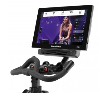 Беручи участь у мотивувальних курсах їзди на кардіосайклі у приміщенні, ви можете повністю зосередитись на тренуванні. NordicTrack S22i автоматично адаптує рівень опору тренування і навіть нахил кардіотренажера відповідно до вимог тренера. Швидкість, нахил, відстань, пульс, тривалість тренування та калорії можна контролювати та регулювати на великому 22" екрані високої чіткості.