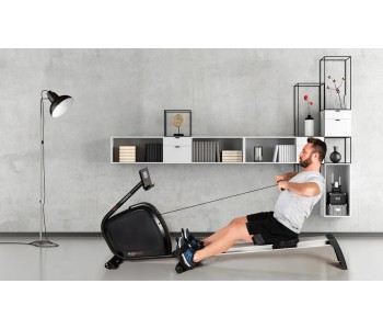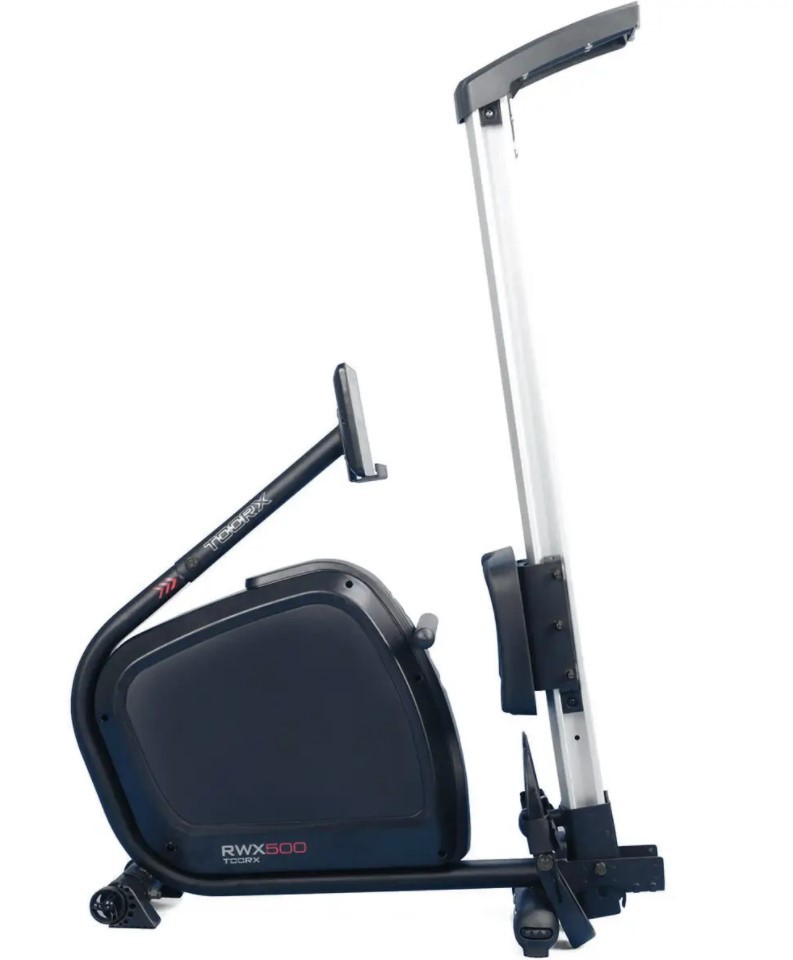 Гребний тренажер Toorx Rower RWX 500 (RWX-500) з преміальної лінійки Chrono Line італійського виробника Garlando S.p.A. призначений для комплексного кардіотренування в домашніх умовах. Тренажер має 16 рівнів навантаження, що регулюються за допомогою сучасного комп'ютера. 9-кілограмовий маховик завдяки магнітній системі гальмування, яка не виробляє тертя, забезпечує оптимальну амплітуду рухів та відносну безшумність в процесі тренування. Гребний тренажер розрахований на вагу до 130 кг, а його сидіння на роликах ковзає по алюмінієвій напрямній, гарантуючи необхідний комфорт навіть за тривалих вправ. Вбудований приймач для бездротового датчика вимірювання пульсу буде доречним під час тренування для контролю частоти серцевих скорочень. Складана конструкція тренажера заощаджує місце і дозволяє розмістити його навіть на мінімальній площі, яка потрібна для занять спортом.