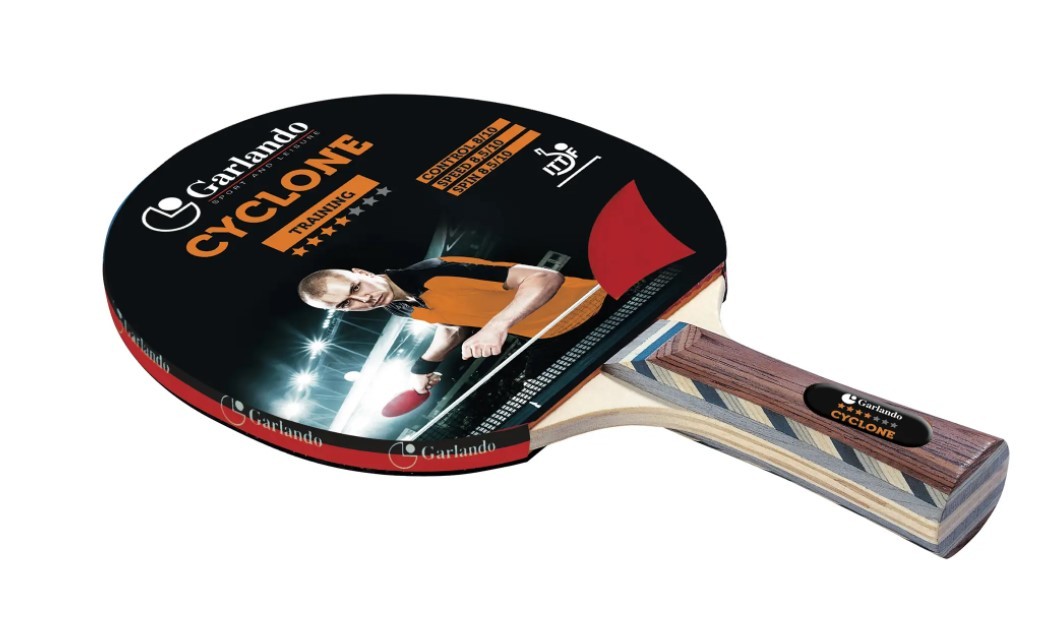 Ракетка для настільного тенісу Garlando Cyclone 4 Stars (2C4-116) із серії Training призначена для підготовлених гравців. Модель має рейтинг 4 Stars і схвалена Міжнародною федерацією настільного тенісу ITTF, що робить її ідеальною для регулярних тренувань, а також для участі в змаганнях аматорського рівня.