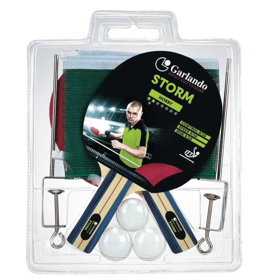 Набір для настільного тенісу Garlando Storm (2C4-5) серії Hobby складається з двох ракеток, трьох м'ячів і сітки з кріпленням, призначених для гравців-початківців. Ракетки мають рейтинг 2+ Stars і схвалені Міжнародною федерацією настільного тенісу ITTF, що робить їх ідеальними для гравців, які хочуть покращити свою гру за рахунок кращого контролю м'яча та стабільного удару.