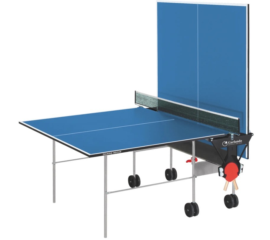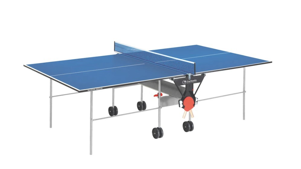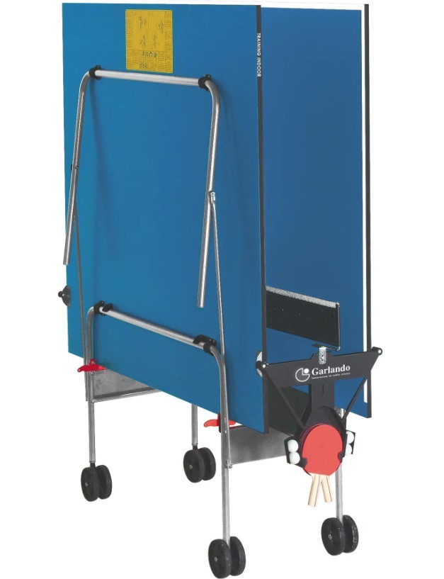 Тенісний стіл Garlando Training Indoor 16 mm Blue (C-113I) призначений для гри в настільний теніс у закритих приміщеннях. Ігрова поверхня виконана з високоякісного ДСП товщиною 16 мм із меламіновим покриттям. Каркас та ніжки виготовлені з металевих трубок діаметром 25 мм із порошковим фарбуванням. Чотири здвоєні транспортувальні колеса діаметром 125 мм, два з яких обертаються на 360°, суттєво полегшують переміщення столу за потреби. Тенісний стіл оснащений сіткою та тримачем для ракеток і м'ячів. Складана конструкція з автоматичною системою блокування забезпечує зручне зберігання столу в домашніх умовах. Піднявши одну з половинок стільниці, тенісний стіл можна використовувати як для одиночних тренувань, так і для гри людьми з обмеженими можливостями. Стільниця забезпечує хороший відскік м'яча, а покриття антивідблиску дозволяє грати довше, не напружуючи очей. Тенісний стіл Garlando Training Indoor 16 mm Blue (C-113I) відповідає Європейському стандарту безпеки EN 14468-1.