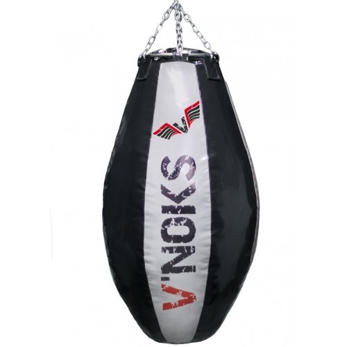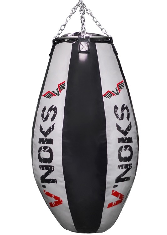Боксерська груша аперкотна V'Noks (Вінокс) 50-60 кг виконана вручну, спеціально розробленого інженерами компанії V'Noks (Вінокс), PVC матеріалу та армованої нитки за особливою технологією, для довгострокових та інтенсивних навантажень. Правильне набивання мішка витримає відпрацювання навіть самих сильних ударів ногами і руками. Ви зможете відточити свою техніку, підвищити показники сили і швидкості удару. Завдяки надміцним матеріалам і сталевому монтажному кільцю, виключається можливість опади наповнювача. Мішок тривалий час зберігає свою форму і прослужить Вам багато років навіть при інтенсивній експлуатації. Вага 50-60 кг Висота: 1,1 м. Діаметр: 55 см. В комплекті з мішком ланцюг на 3 променя.