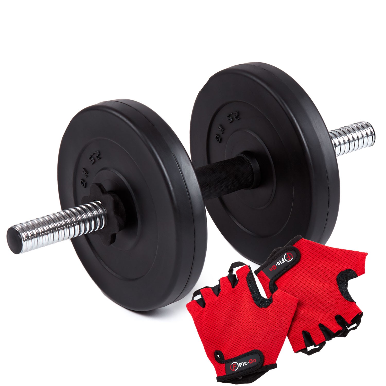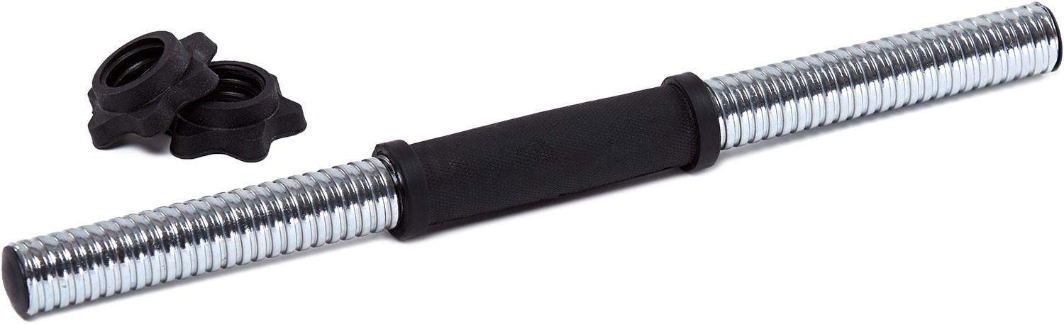 диски вкриті кількома шарами пластику, що забезпечує захист підлоги, панелей, плитки, коли гантелі падають; набір також включає суцільний прямий гриф з гвинтами з гвинтами, з a Загальна довжина 45 см. NBSP; Основними елементами шиї є закінчення гвинта та клеми, гофровані ручки - ці елементи покращують кожен тренінг.