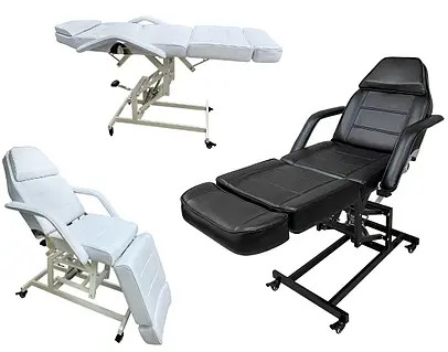 Це професійне трисекційне крісло — ідеальне рішення для косметологічних кабінетів, тату-салонів та центрів естетичної медицини. Завдяки надійному гідравлічному підйомнику та можливості повної горизонтальної розкладки, воно забезпечує максимальний комфорт як для майстра, так і для клієнта під час тривалих процедур.