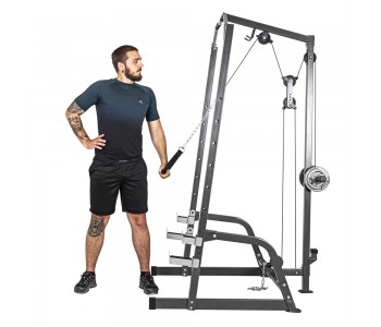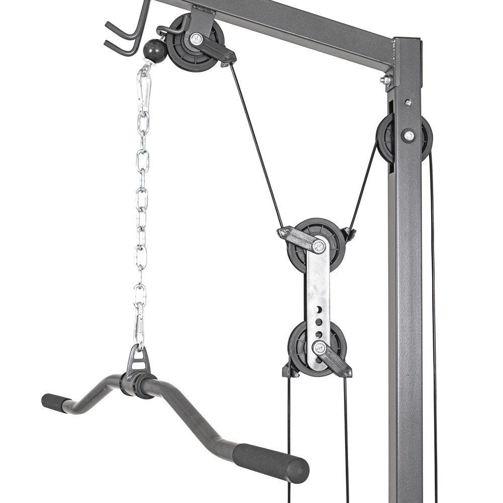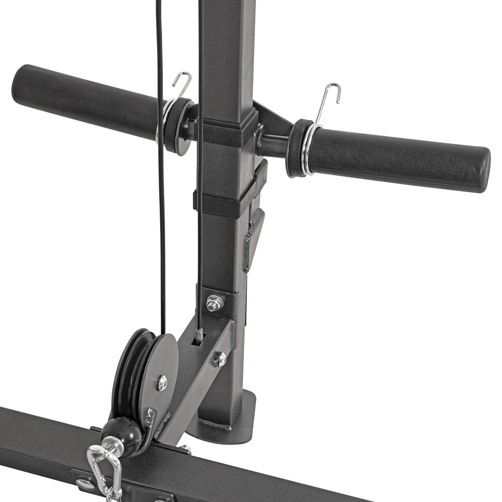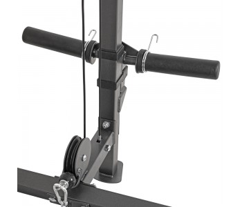 Чекай, стане краще! При тренуванні зі шківами ви можете замінити оригінальний хват одним із двох подовжувачів - ножним ременем або ручкою для однієї руки. У верхній частині станції є поролонові захоплення, які можна використовувати як перекладину.
