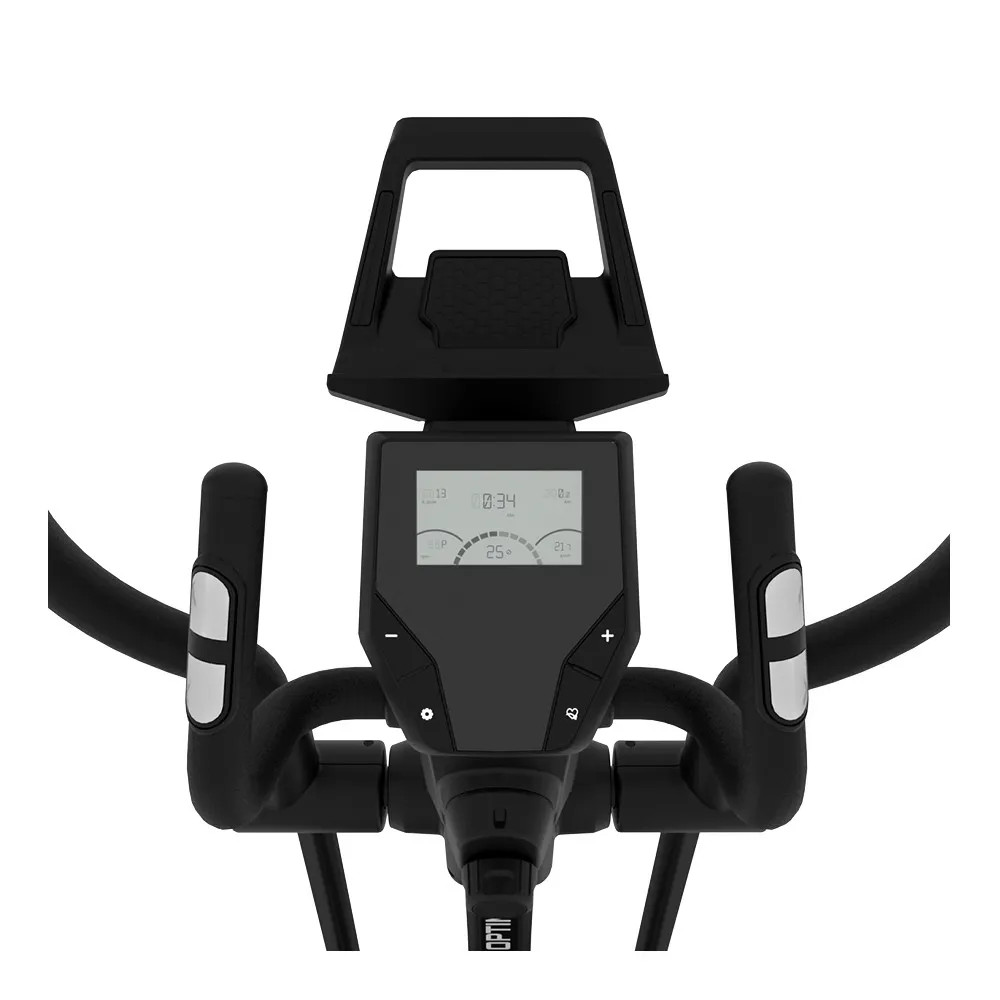 OPTIMA 100 - магнітний еліптичний тренажер з 8 рівнями навантаження. Тренажерний комп'ютер з чітким дисплеєм і зручними кнопками дозволяє контролювати параметри тренувань. Магнітний опір забезпечує плавну і тиху роботу. Опір регулюється за допомогою ручки, яка знаходиться на відстані витягнутої руки.