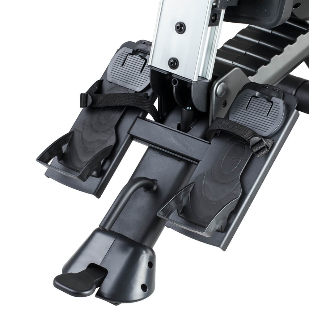 Гребной тренажер inSPORTline Rivu – это современный профессиональный тренажер с отличными характеристиками. Прочная конструкция с длинным диапазоном движения по направляющей (99 см) впечатляет своей высокой грузоподъемностью - 150 кг, даже при очень частом использовании. Оборудование оснащено маховиком весом 3 кг, но учитывая передаточное отношение редуктора 1:4,6, имеет нагрузку, сравнимую с гребными тренажерами с гораздо более тяжелым маховиком. Благодаря умеренному весу и встроенным колесам для транспортировки, это мобильная и удобная в перемещении модель гребного тренажера. Магнитная система торможения обеспечивает долгий срок службы и максимальную безопасность. Электронная система регулировки нагрузки позволяет выбрать одно из 16 уровней нагрузки, оптимальные для всех категорий производительности. Складная конструкция позволяет сэкономить ценное пространство, когда тренажер не используется.