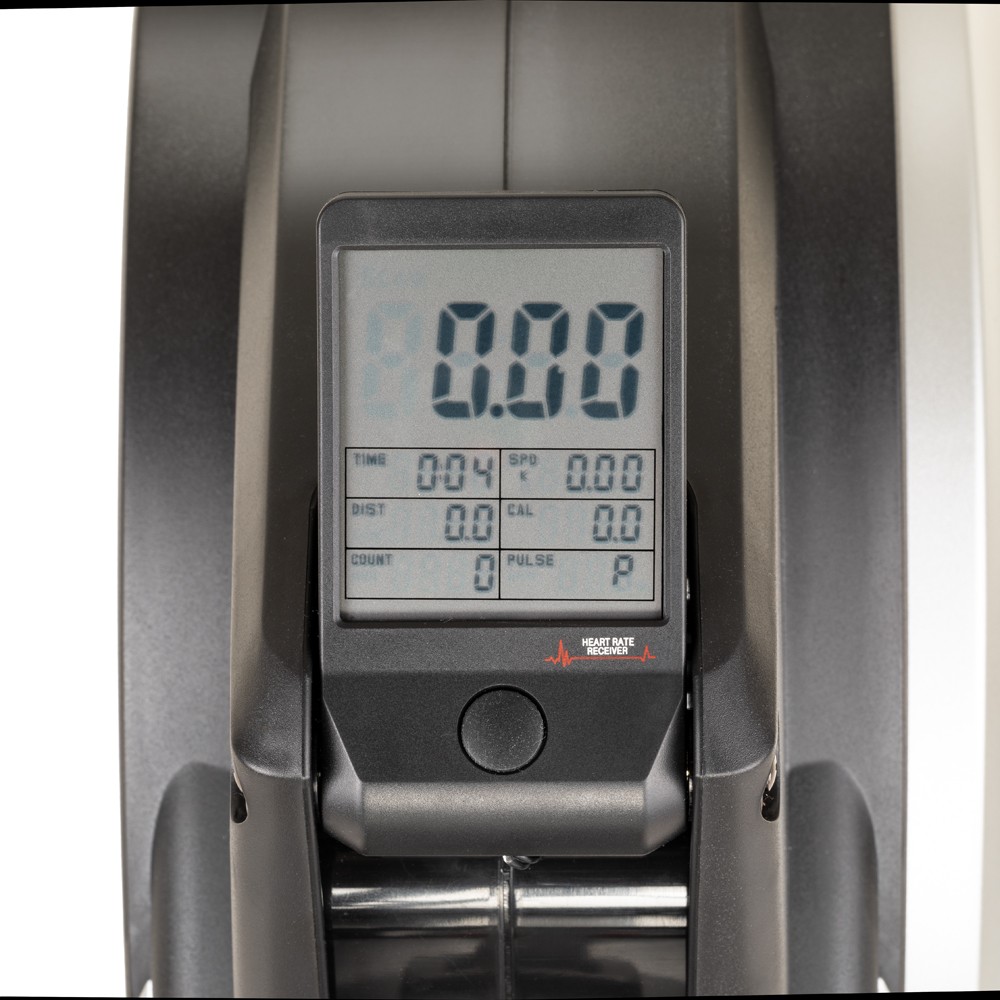 - Дисплей показує: час, відстань, калорії, кількість гребків, оберти на хвилину, частоту серцевих скорочень.