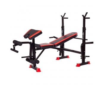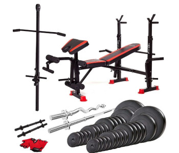 Цей багатофункціональний набір стане надійною основою для розвитку сили та витривалості як новачків, так і досвідчених атлетів. Надійна лава Fit-On FN-S102 укомплектована тягою, партою Скотта та модулем для тренування ніг, а диски з м’яким пластиковим корпусом гарантують безпечні тренування навіть удома.
