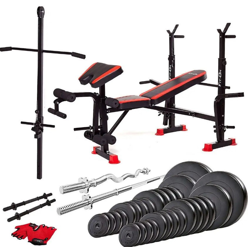 Fit-On FN-S102 + комплект штанга та гантелі 140 кг — усе для повноцінного домашнього тренування.